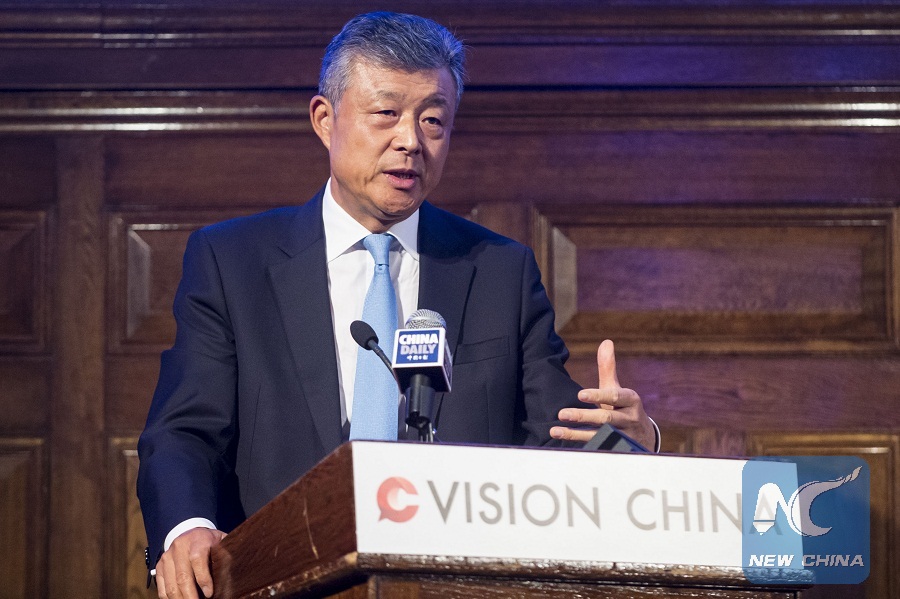 Chinese Ambassador to Britain Liu Xiaoming speaks during a forum themed "40 Years on: China and the World" in London, Britain, on Sept. 13, 2018.(Xinhua/Stephen Chung)
