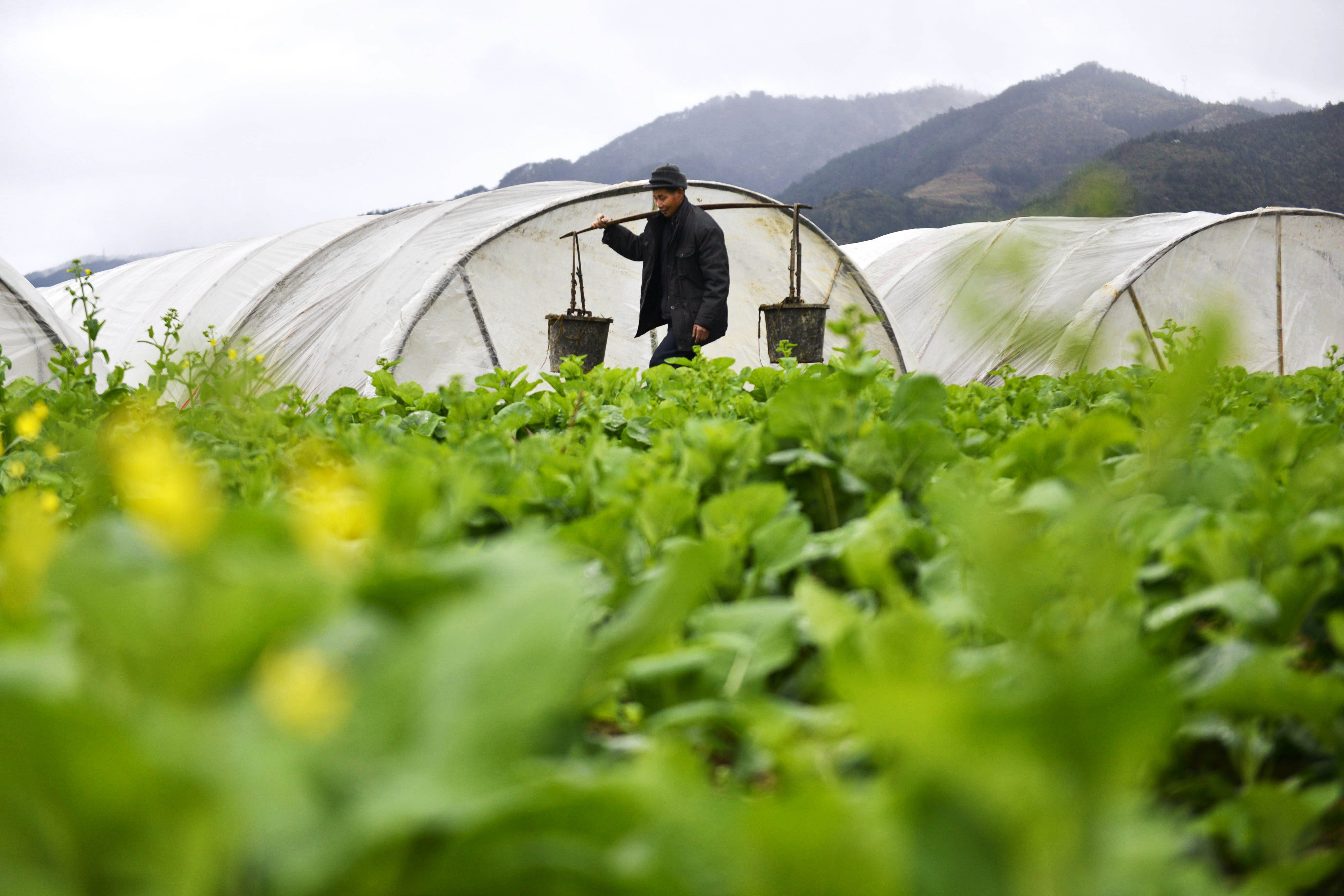 A farmer walks in the field in Rongjiang County of Qiandongnan Miao and Dong Autonomous Prefecture, southwest China's Guizhou Province, Feb. 17, 2019. (Xinhua/Hu Tao)