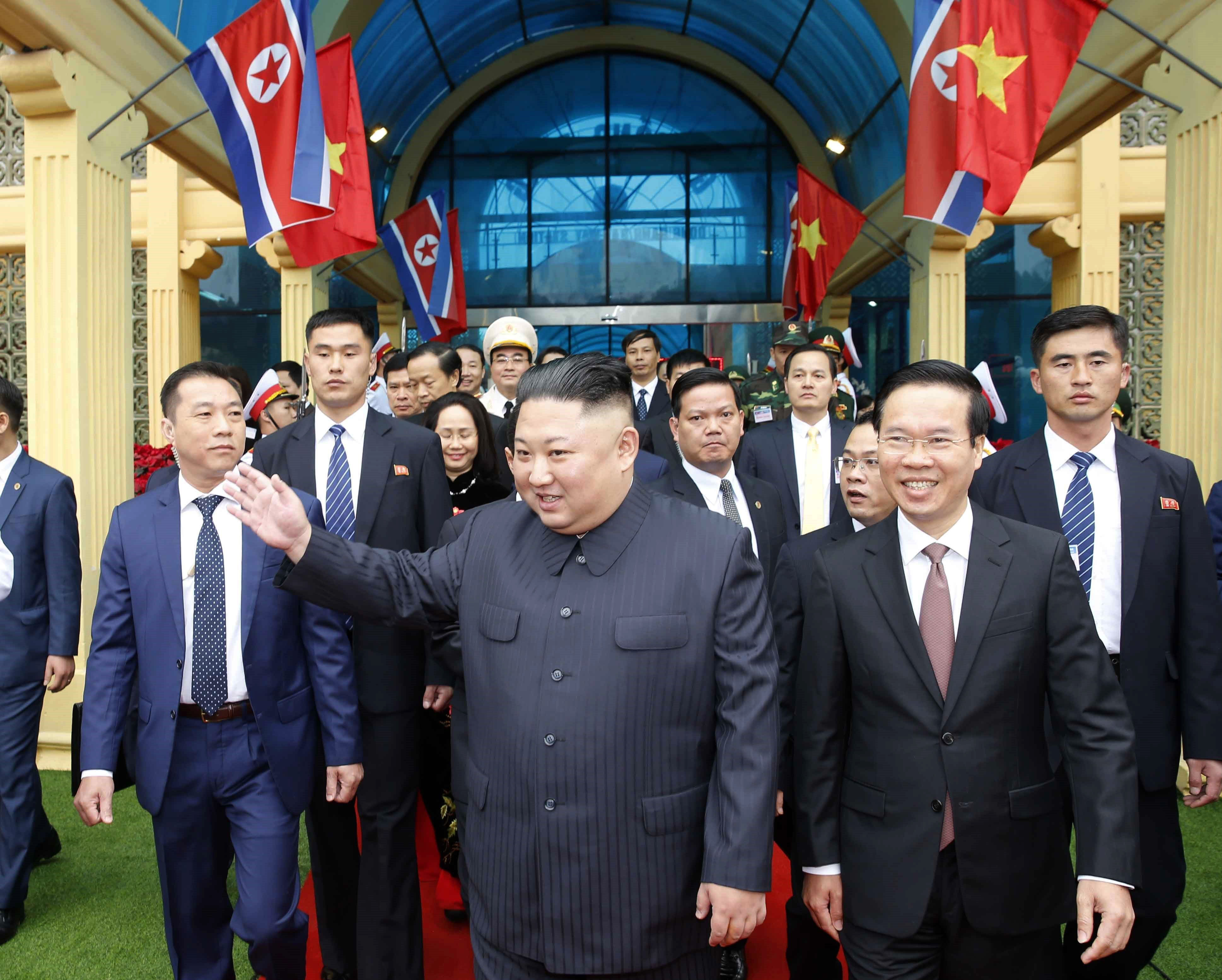 In this photo provided by Vietnam News Agency, top leader of the Democratic People's Republic of Korea (DPRK) Kim Jong Un (C) arrives at Dong Dang railway station in Lang Son Province, Vietnam, on Feb. 26, 2019. (Xinhua)