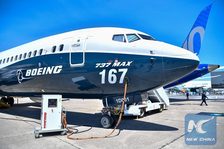 File photo taken on June 19, 2017 shows a Boeing 737 MAX 9 in Bourget, France. (Xinhua/Chen Yichen)