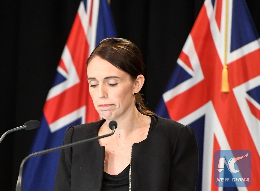 New Zealand Prime Minister Jacinda Ardern reacts during a briefing in Wellington, capital of New Zealand, on March 16, 2019. (Xinhua/Guo Lei)