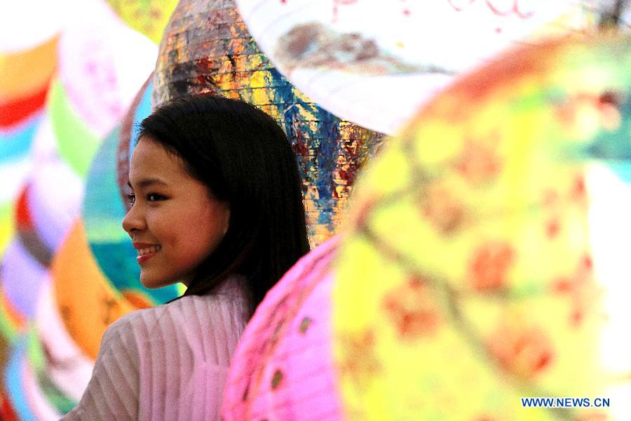 A girl poses among lantern decorations at the Chinatown in Manila, the Philippines, Feb. 2, 2019. China will hold the Conference on Dialogue of Asian Civilizations starting from May 15. Under the theme of "exchanges and mutual learning among Asian civilizations and a community with a shared future," the conference includes an opening ceremony and sub-forums. (Xinhua/Rouelle Umali)