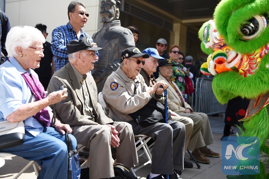 Flying Tigers veterans attend the opening ceremony of the 2019 U.S.-China Cultural Tourism Festival in Las Vegas, the United States, on May 10, 2019.