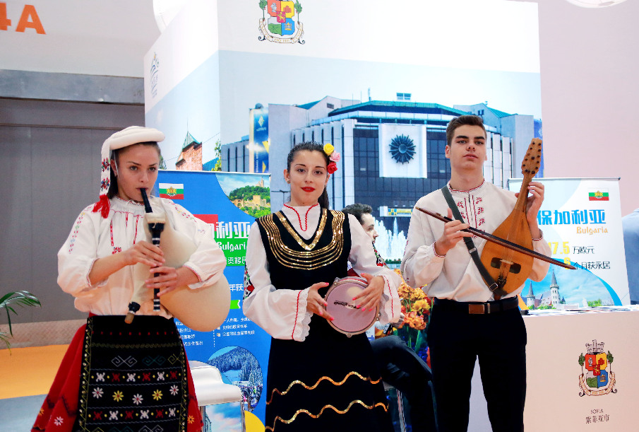 Artists from Bulgaria perform at Beijing International Tourism Expo 2019 in China National Convention Center in Beijing, capital of China, June 18, 2019. (Xinhua/Pan Xu)