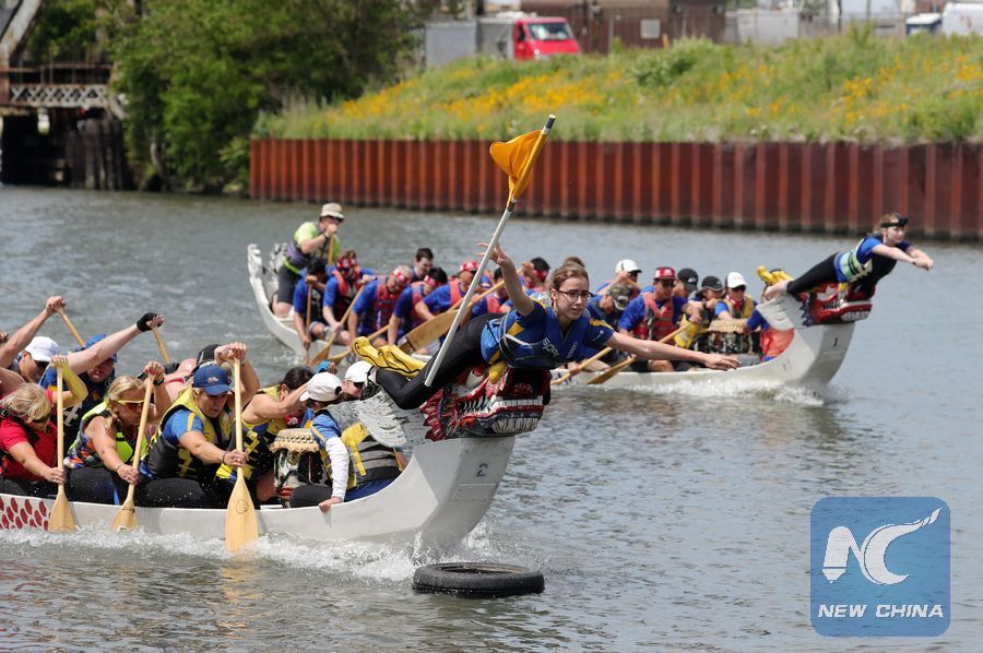 CHICAGO, June 22 (Xinhua) -- The 2019 Chicago Dragon Boat Race kicked off on the south branch of the Chicago River Saturday morning, with 34 dragon boat teams participating in this year's competition.