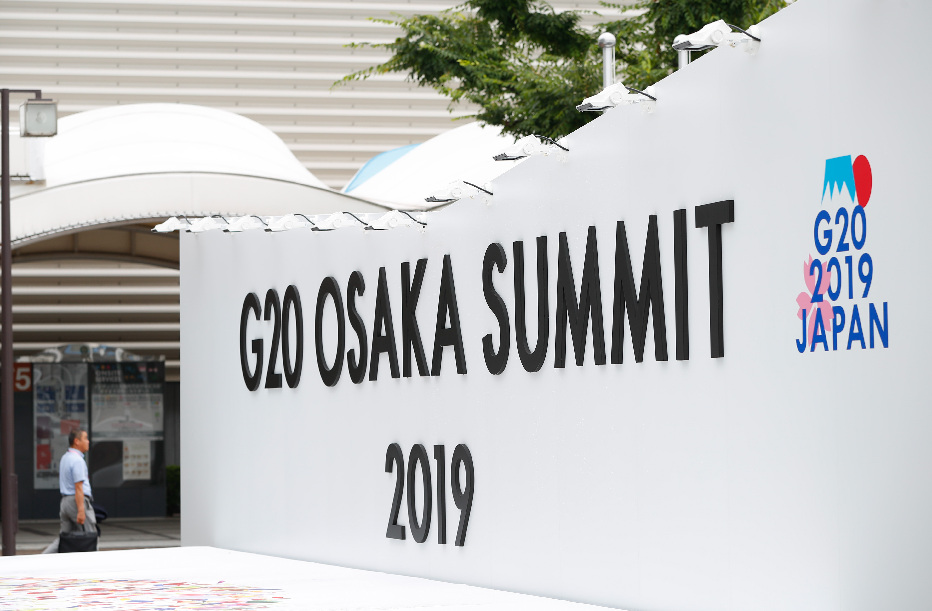 Photo taken on June 27, 2019 shows entrance of the media center of the 14th Group of 20 (G20) summit in Osaka, Japan, June 27, 2019. The 14th G20 summit will be held in Osaka from June 28 to 29. The media center of the summit was formally put into use on Thursday. (Xinhua/Wang Jingqiang)