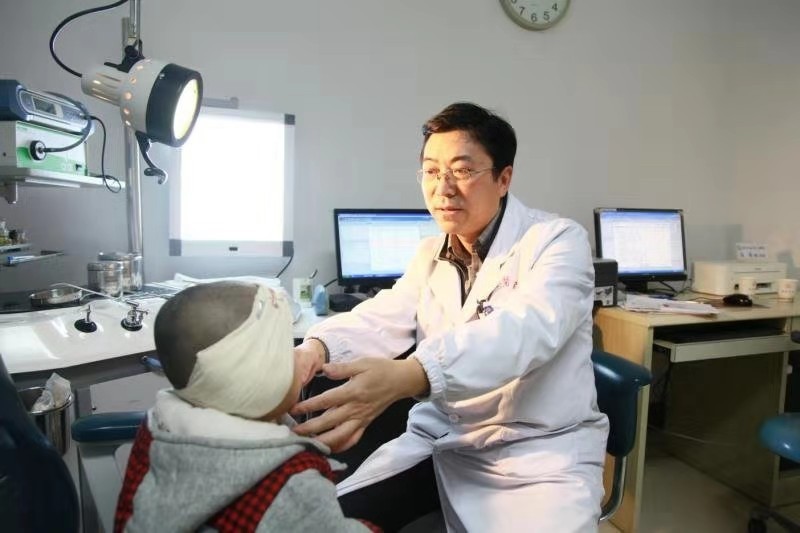 Doctor Feng Yong of Xiangya Hospital under Central South University in Hunan Province is examining a patient's ears. (Photo provided by the Central South University.)