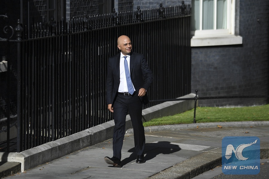 Sajid Javid, who was Home Secretary in May's government, was named as new Chancellor of the Exchequer, succeeding Philip Hammond who resigned.