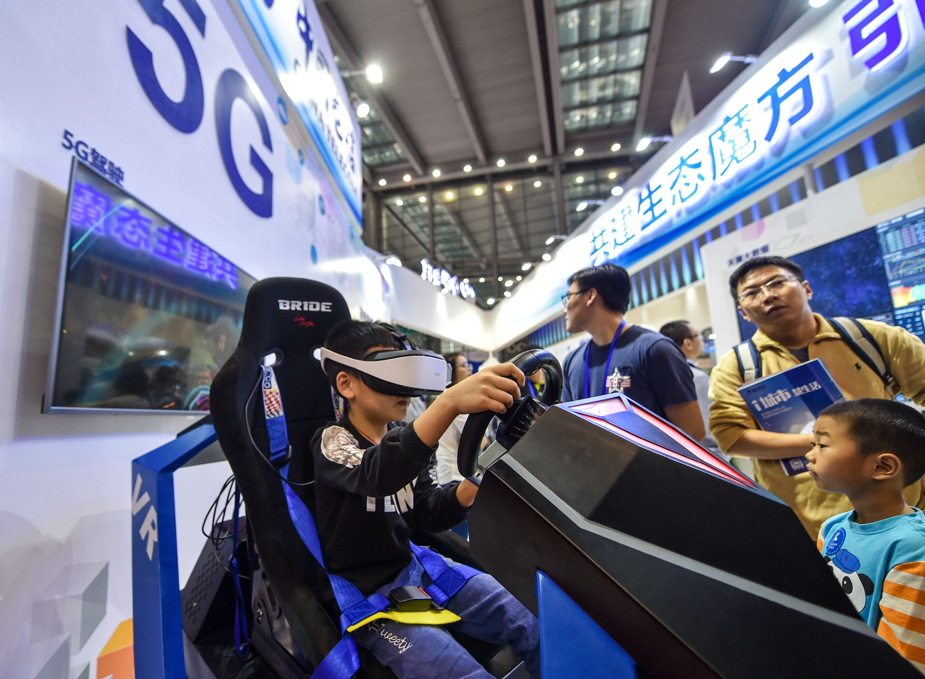 A visitor experiences 5G video games at the 19th China Hi-Tech Fair in Shenzhen, south China's Guangdong Province on Nov. 19, 2017. (Xinhua/Mao Siqian)