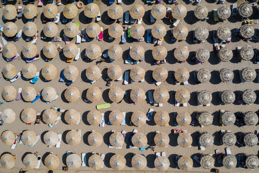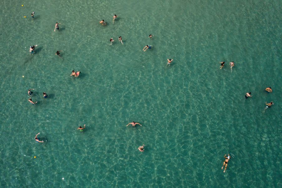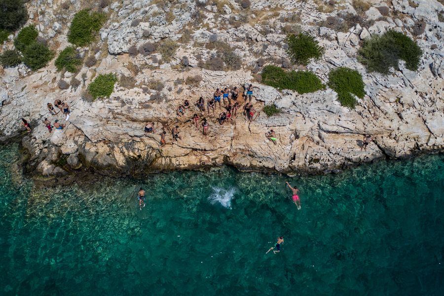An aerial view of Varkiza, one of the largest and most popular beaches of Attica, in Athens, Greece. (Xinhua/Lefteris Partsalis)