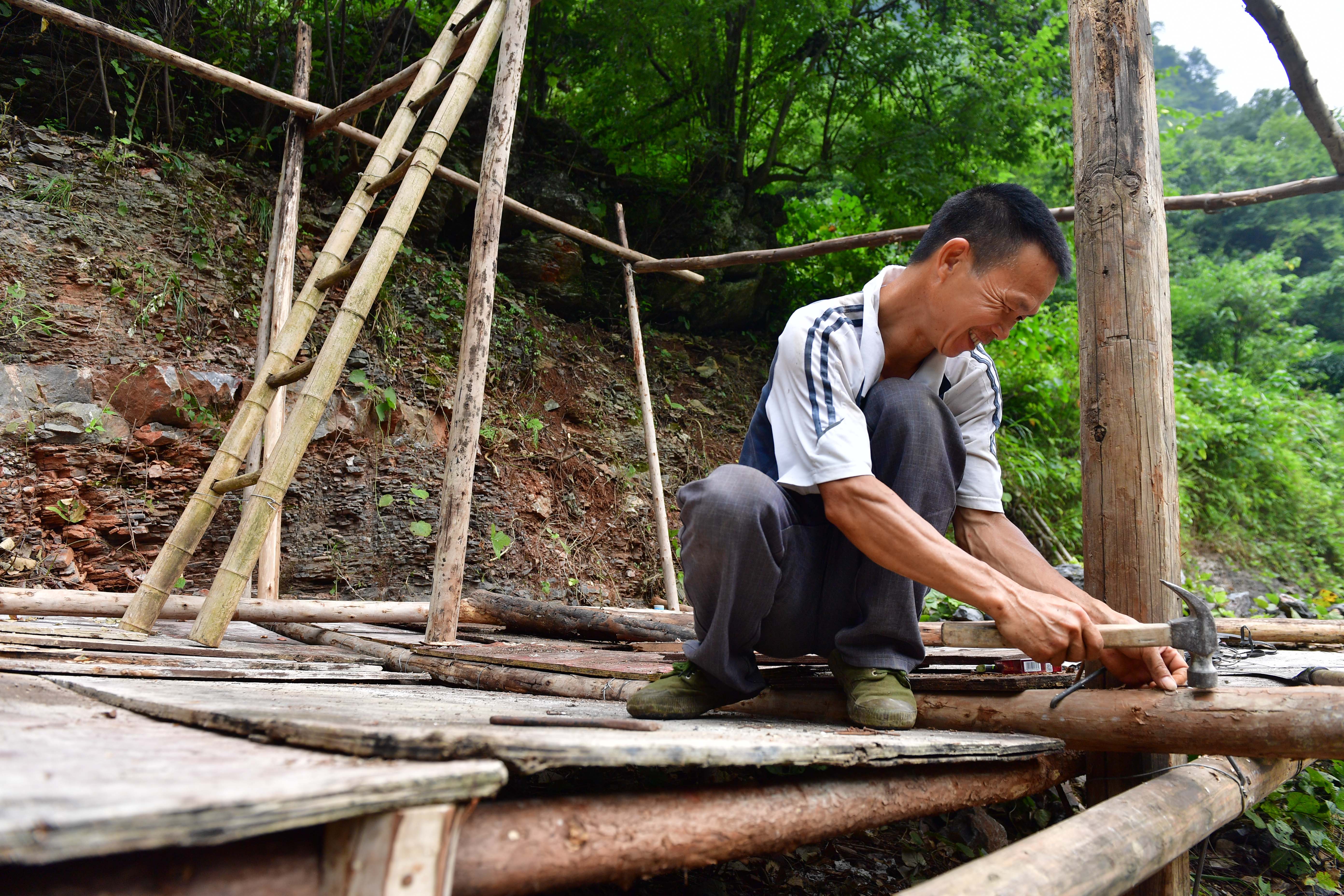 Long Gexiong builds a pheasantry at Tongbantun Village of Dongqi Township in Rongan County, south China's Guangxi Zhuang Autonomous Region. (Xinhua/Huang Xiaobang)