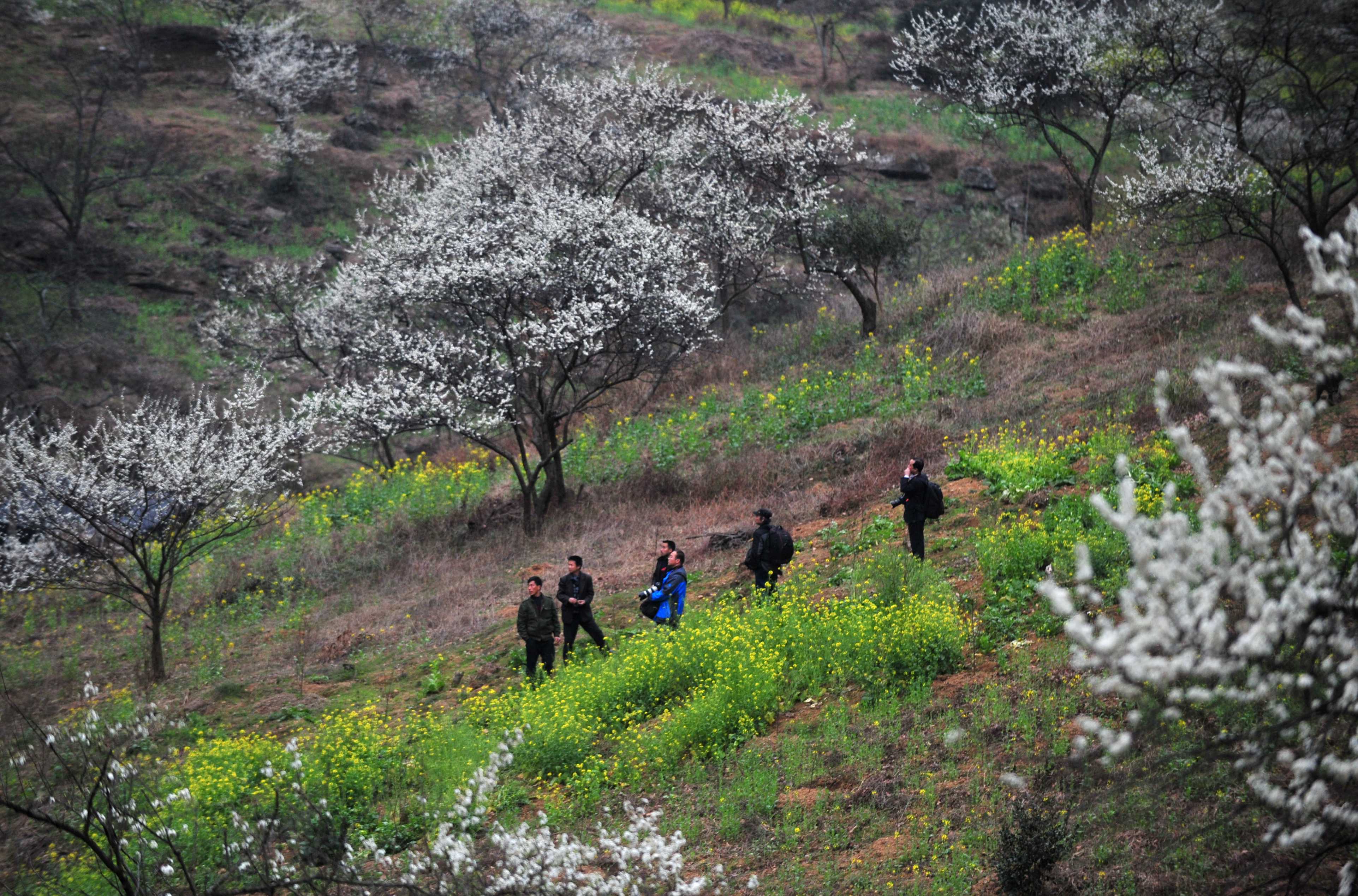 Long Gexiong (2nd L) and tourists view flowers at Tongbantun Village of Dongqi Township in Rongan County, south China's Guangxi Zhuang Autonomous Region. (Xinhua/Huang Xiaobang)