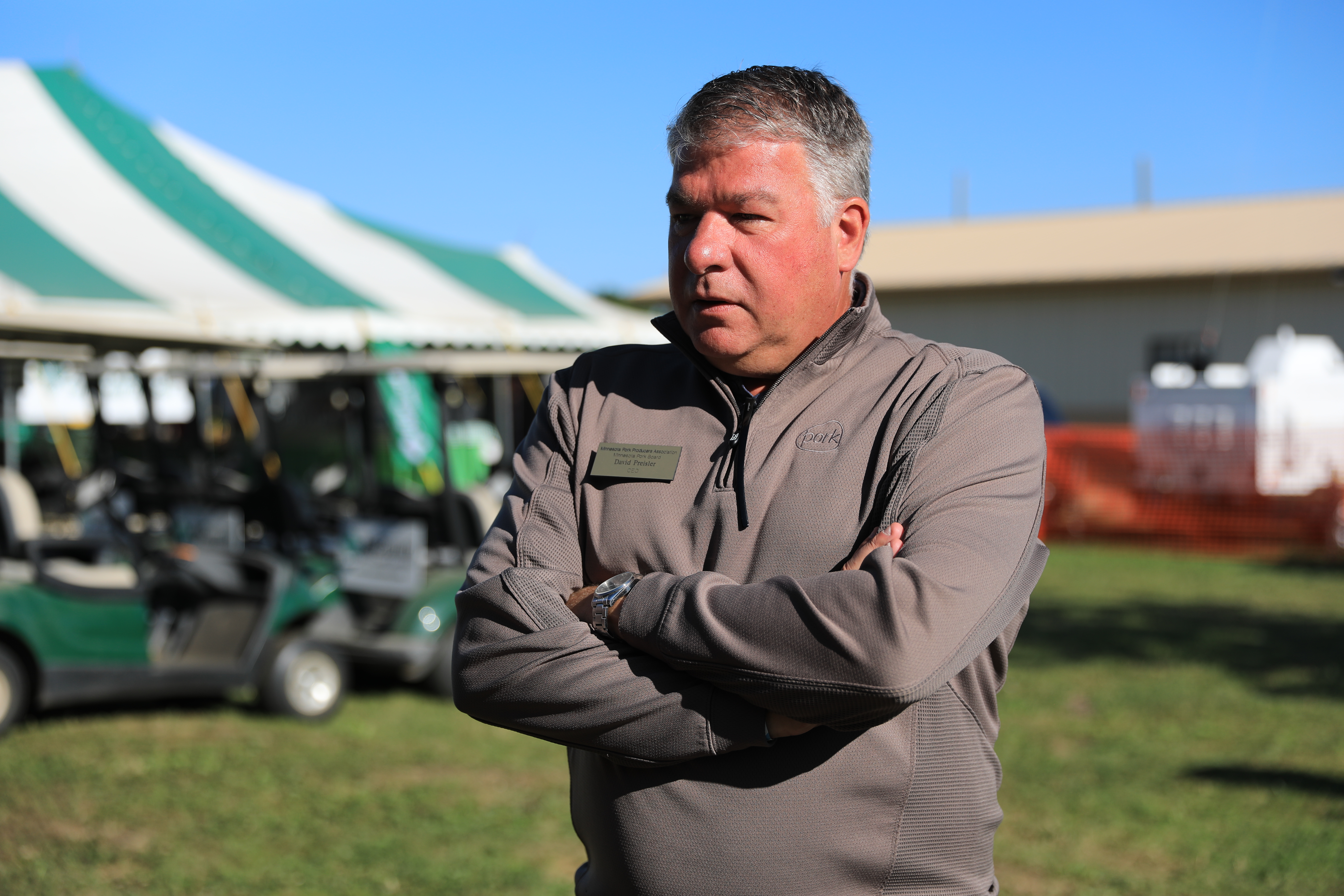 David Preisler, chief executive officer of the Minnesota Pork Producers Association, receives an interview with Xinhua at Farmfest in Redwood County of Minnesota, the United States, Aug. 8, 2019. (Xinhua/Zhang Mocheng)