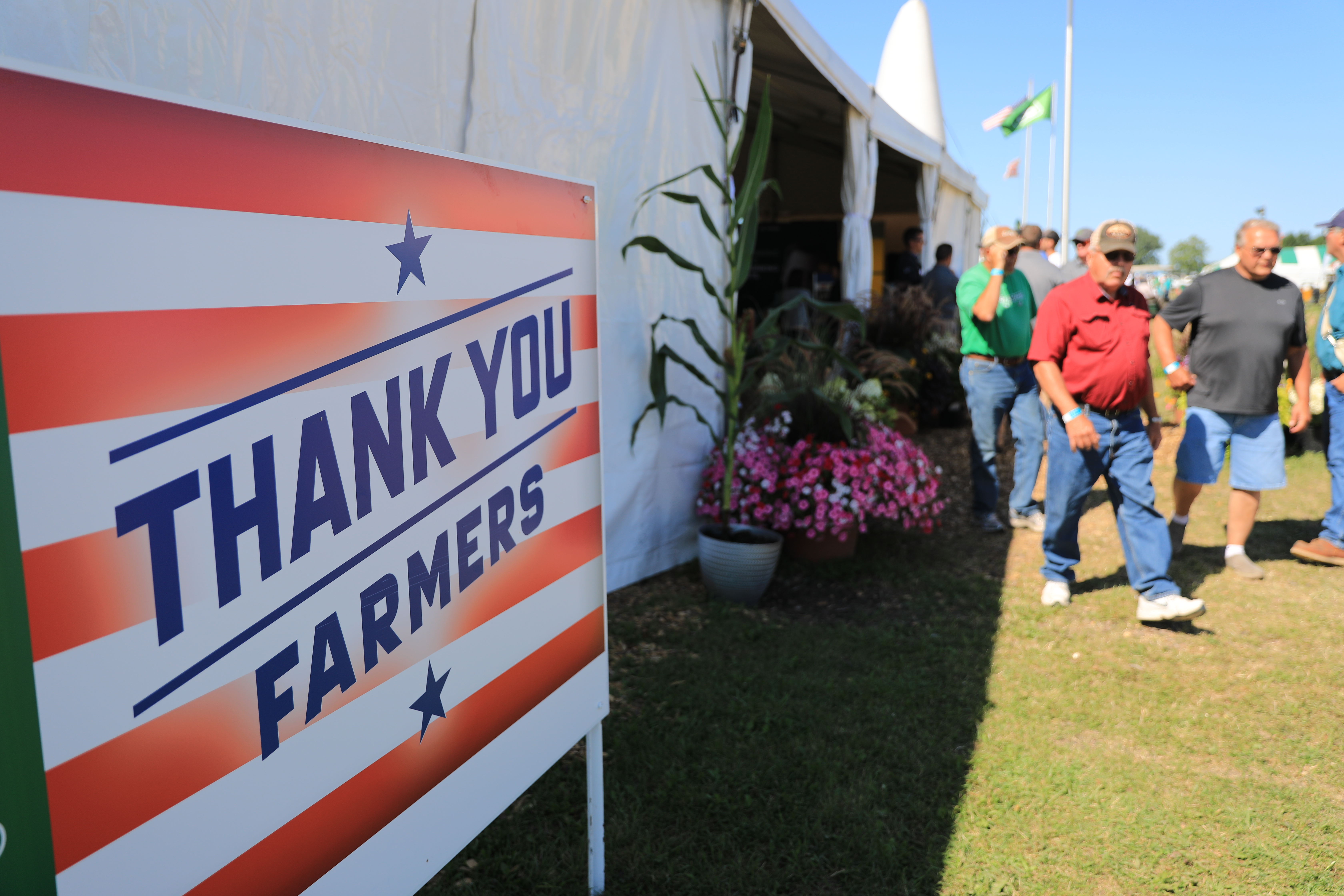 Farmers walk past the entrance to attend Farmfest in Redwood County of Minnesota, the United States, Aug. 8, 2019. (Xinhua/Zhang Mocheng)