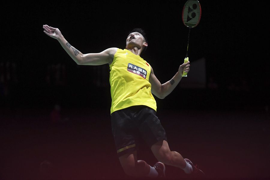China's Lin Dan returns the shuttle during the men's singles first round match against Vietnam's Nguyen Tien Minh at the BWF World Championships 2019 in Basel, Switzerland, on August 19, 2019. (Xinhua/Li Jundong)