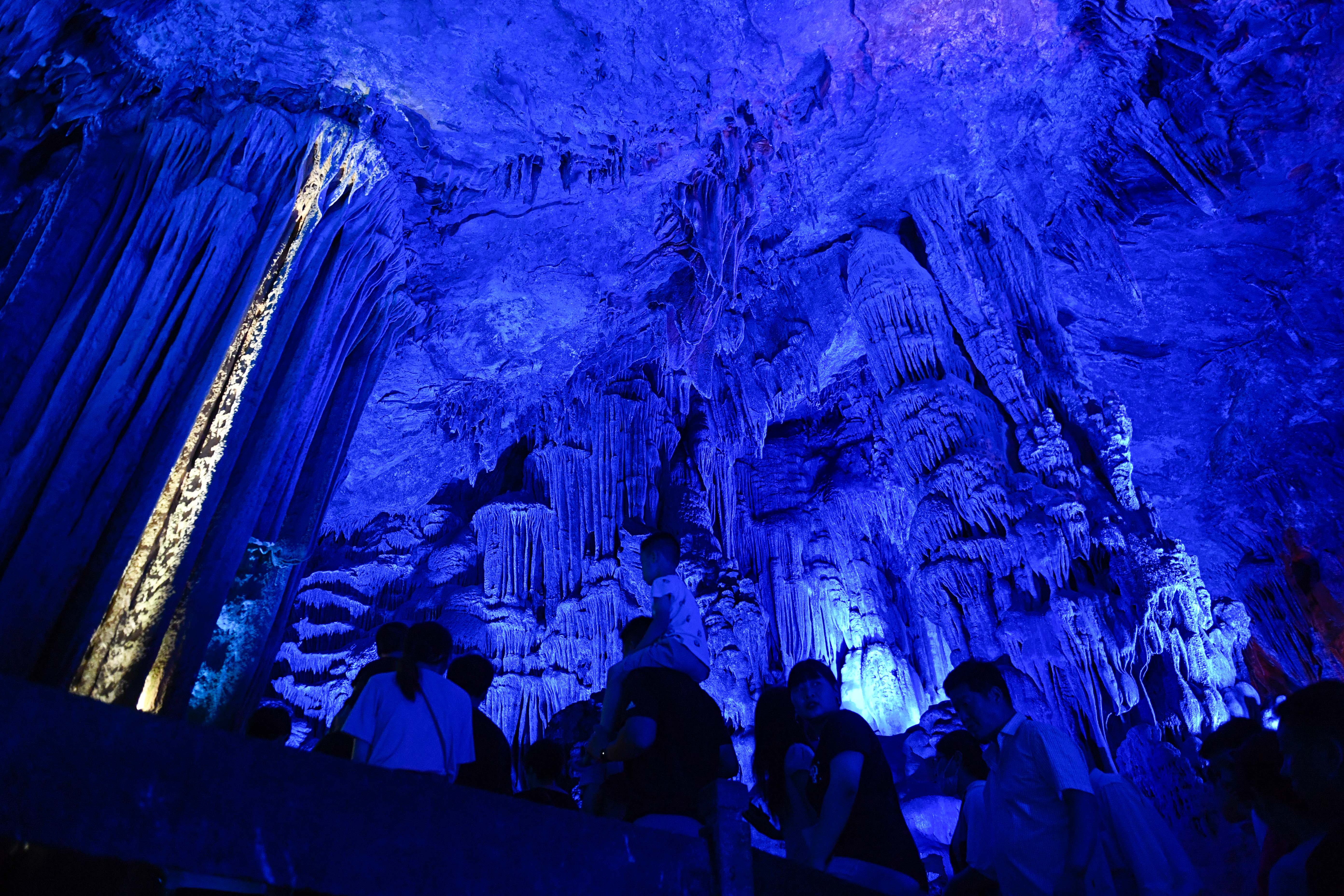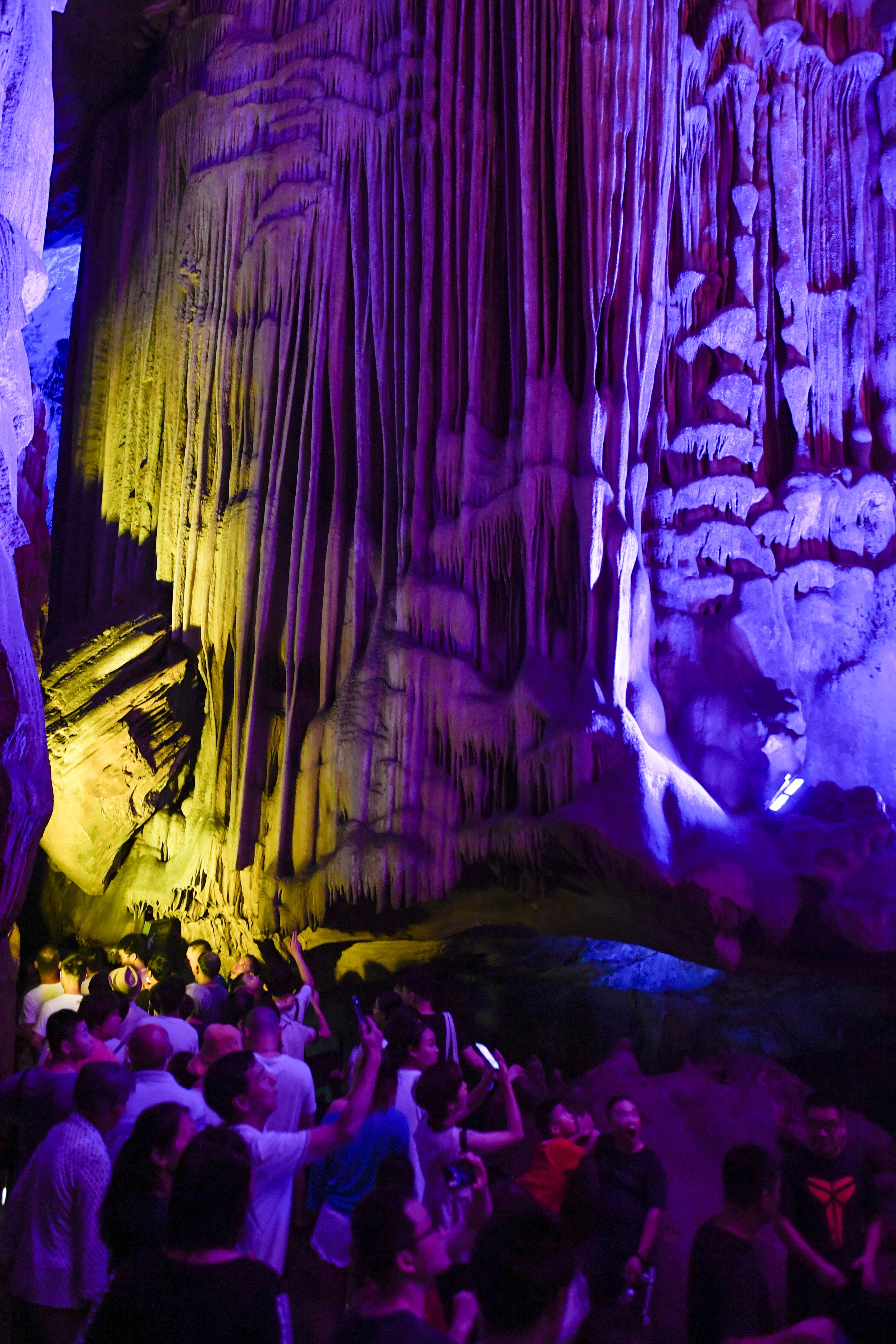 Tourists visit the Yaolin karst cave in Tonglu County, east China's Zhejiang Province, Aug. 25, 2019. (Xinhua/Huang Zongzhi)
