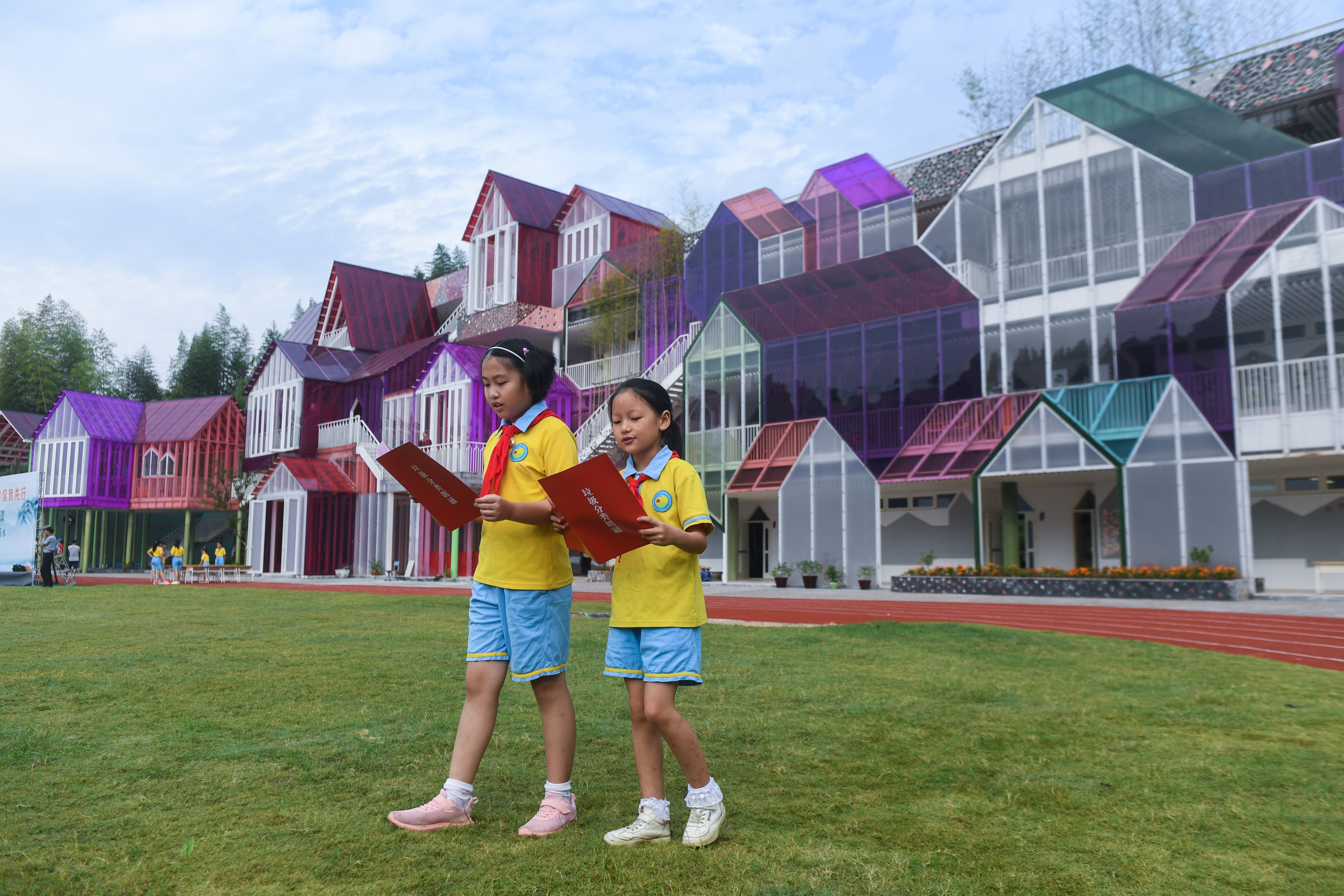 Students have fun in Central Primary School of Fuwen Township at Fuwen Village of Chun'an County in Hangzhou, capital of east China's Zhejiang Province, Aug. 31, 2019.(Xinhua/Xu Yu)