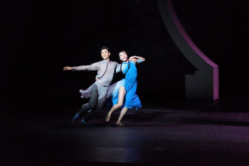 Chinese performers from China's Shanghai Opera House perform Chinese dance drama Early Spring in Dubai Opera on Sept. 12, 2019. (Xinhua photo)