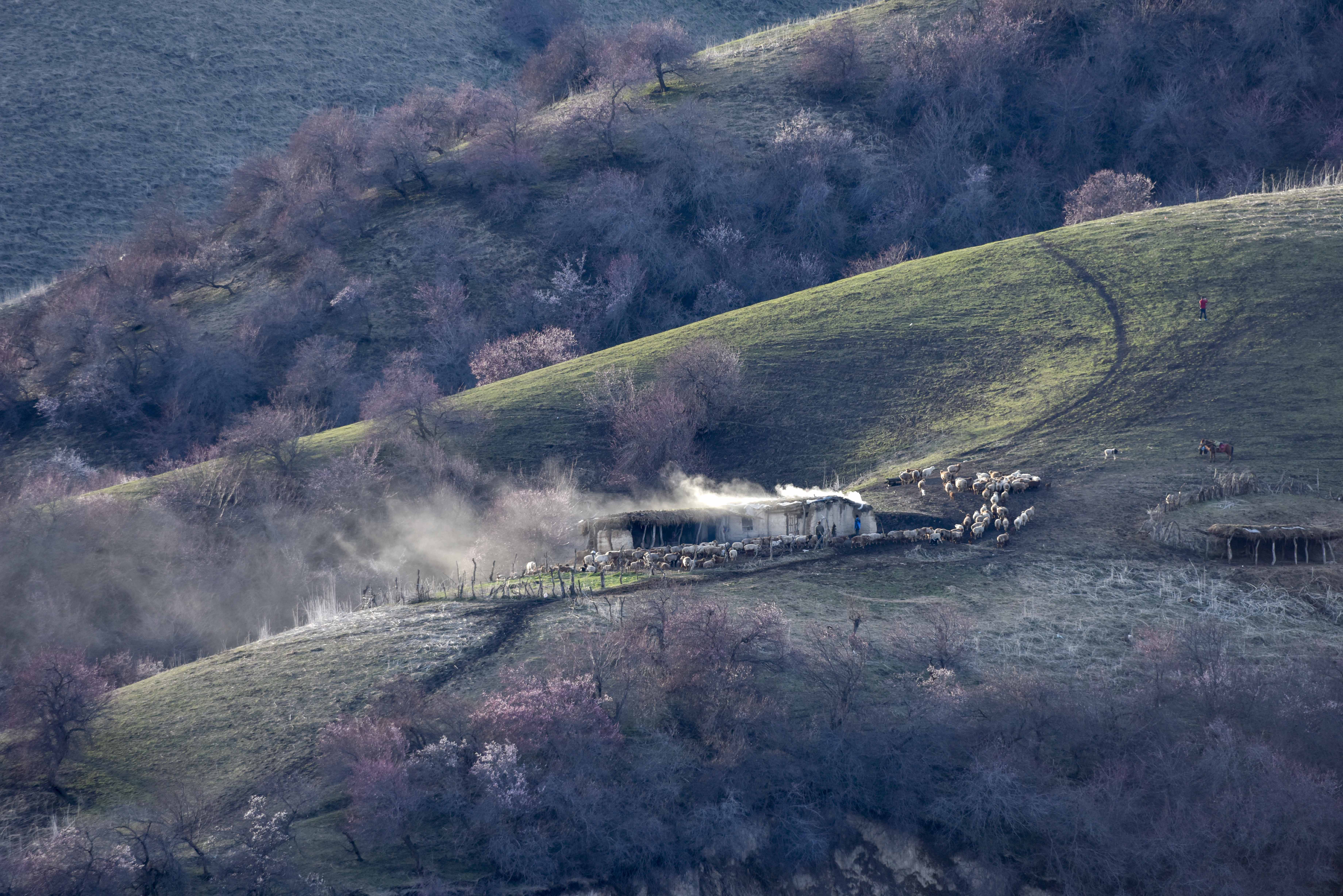 Scenery of Xinghuagou, or "Apricot Valley", in Xinyuan County, northwest China's Xinjiang Uygur Autonomous Region. (Xinhua/Zhao Ge)