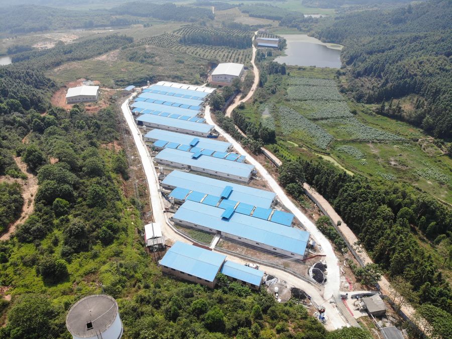 Aerial photo taken on Aug. 6, 2019 shows a view of Jinchuan pig farm of Jiangxi Zhengbang breeding Co. Ltd. in Xingan County, east China's Jiangxi Province. (Peng Jianxin/Handout via Xinhua)
