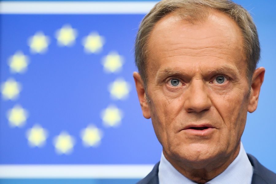 European Council President Donald Tusk attends a press conference during an EU summit in Brussels, Belgium, on Oct. 17, 2019. (Xinhua/Zheng Huansong)■