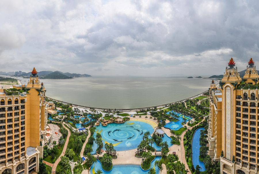 Aerial photo taken on April 19, 2019 shows tourism facilities on Hengqin International Recreation Island in Zhuhai, south China's Guangdong Province. (Xinhua/Liu Dawei)