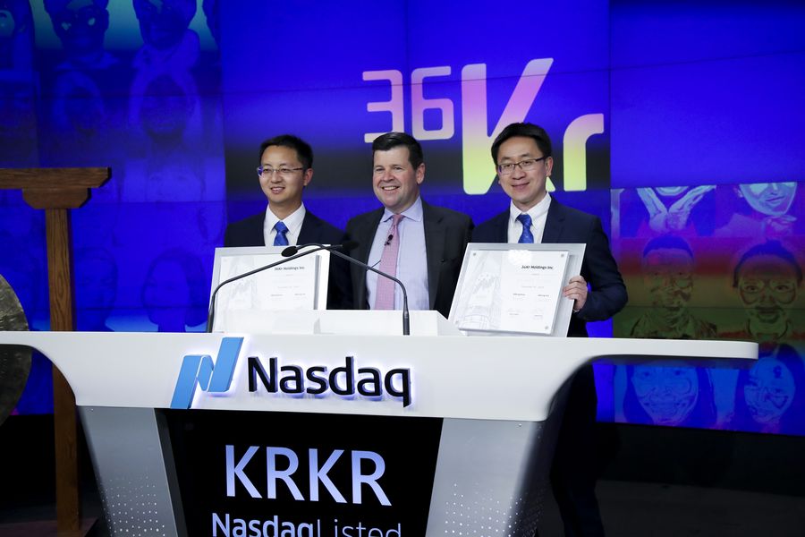 NEW YORK, Nov. 9 (Xinhua) -- 36Kr Holdings Inc., an online media publisher or China's equivalent to TechCrunch in the United States, made public debut on the Nasdaq Global Market on Friday under the ticker symbol KRKR.