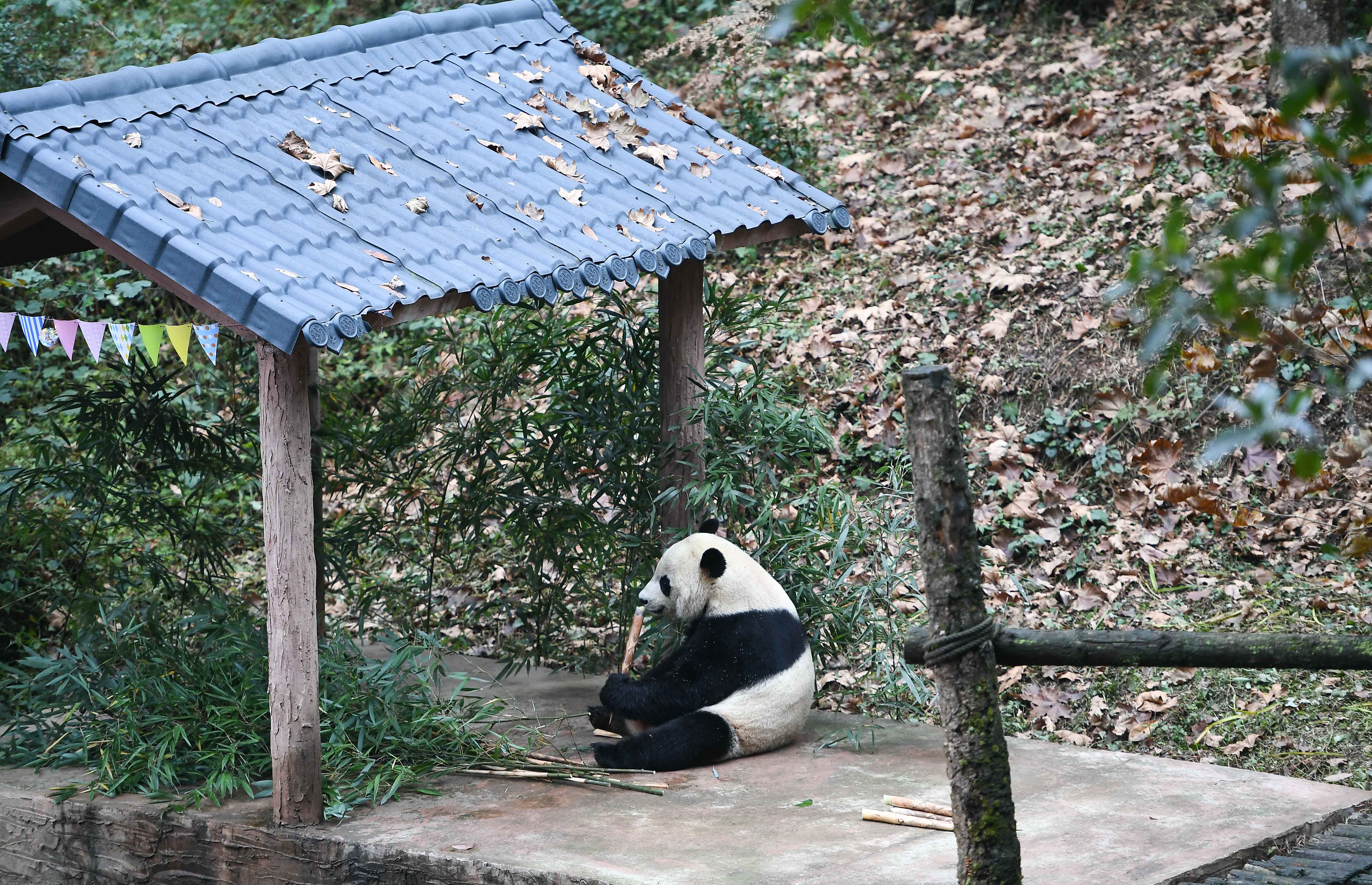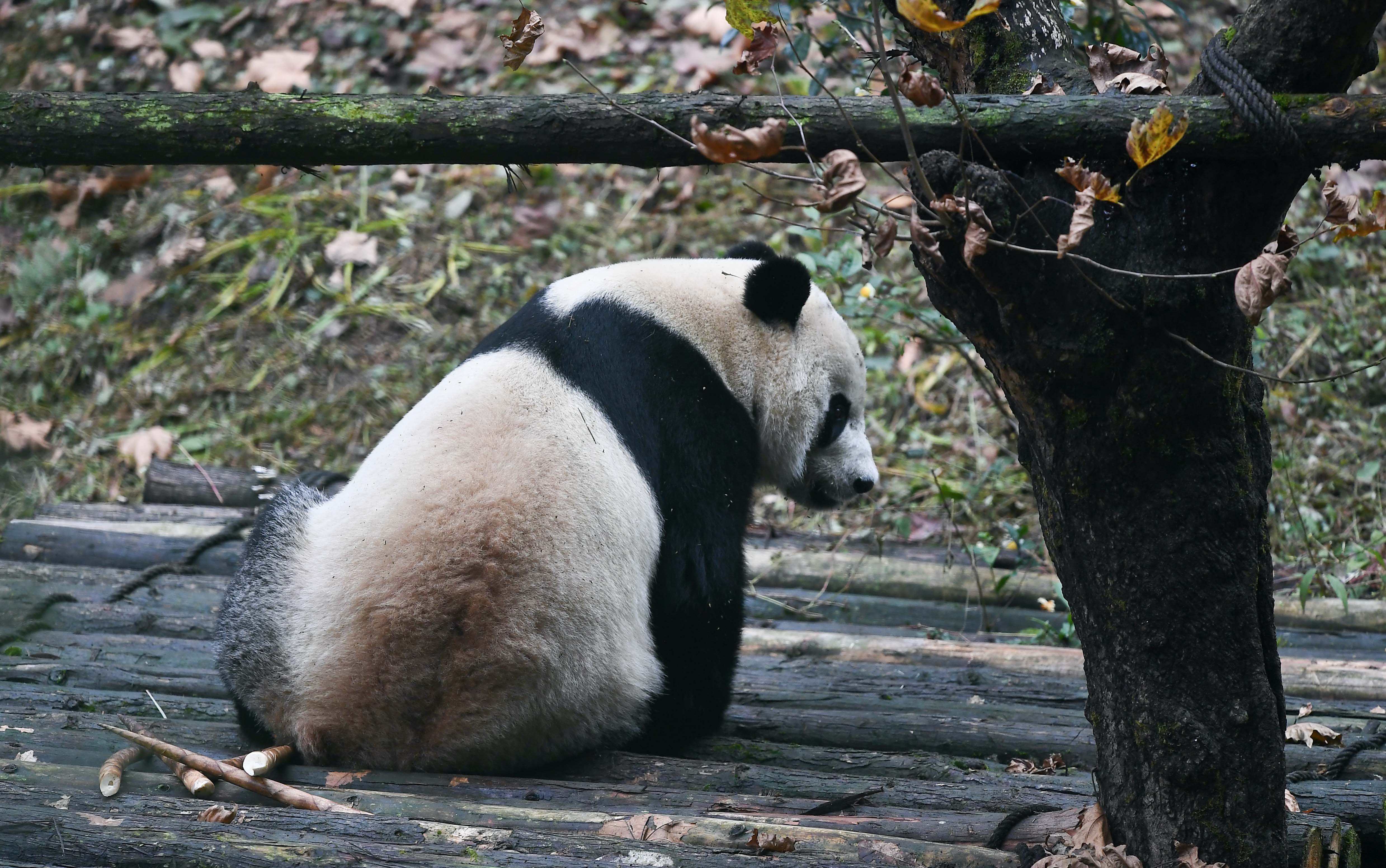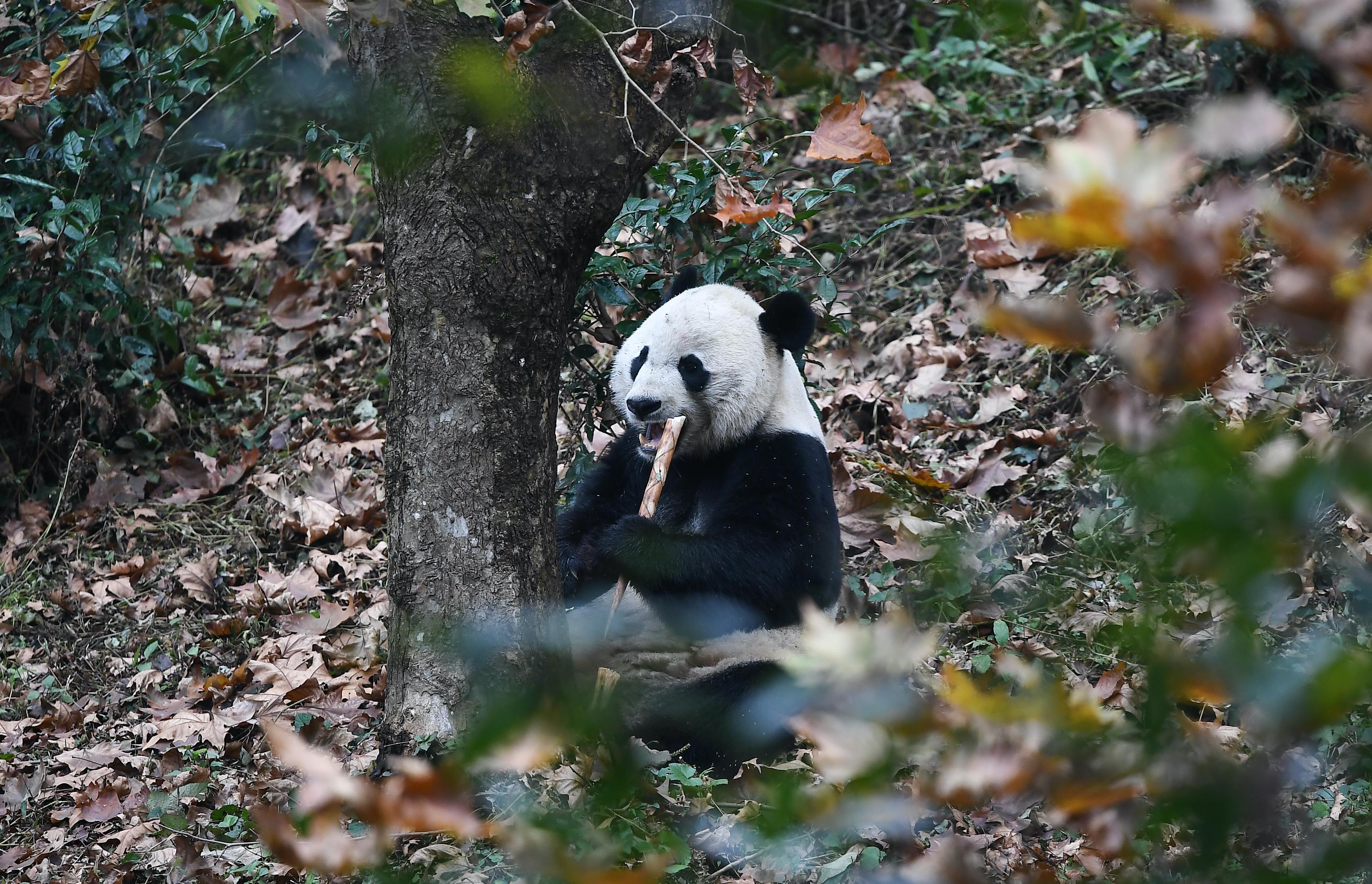 U.S.-born male giant panda Bei Bei is seen after his return from the United States at the Bifengxia Panda Base of the China Conservation and Research Center for the Giant Panda in Ya'an, southwest China's Sichuan Province, Nov. 21, 2019.(Xinhua/Xue Yubin)