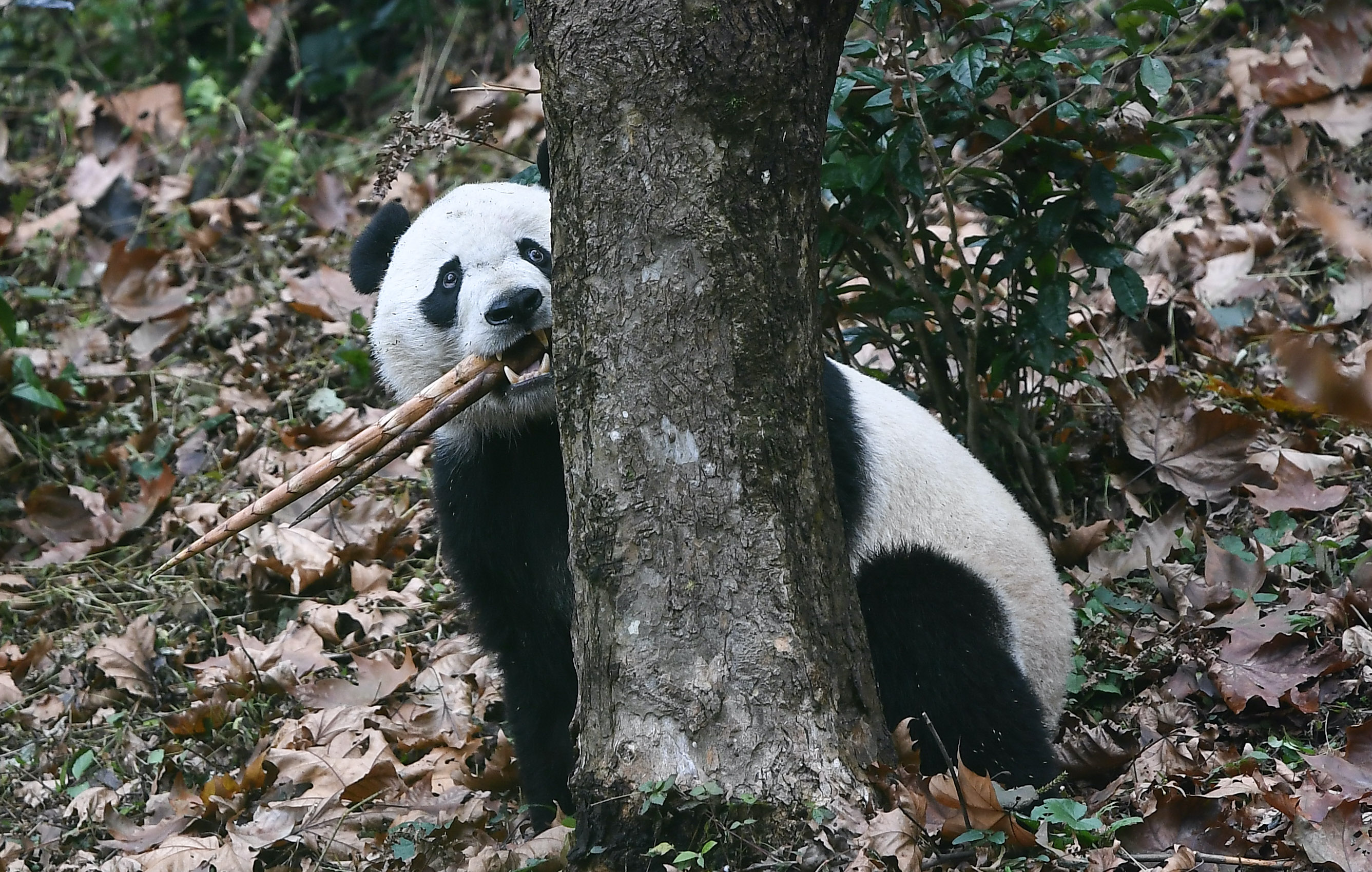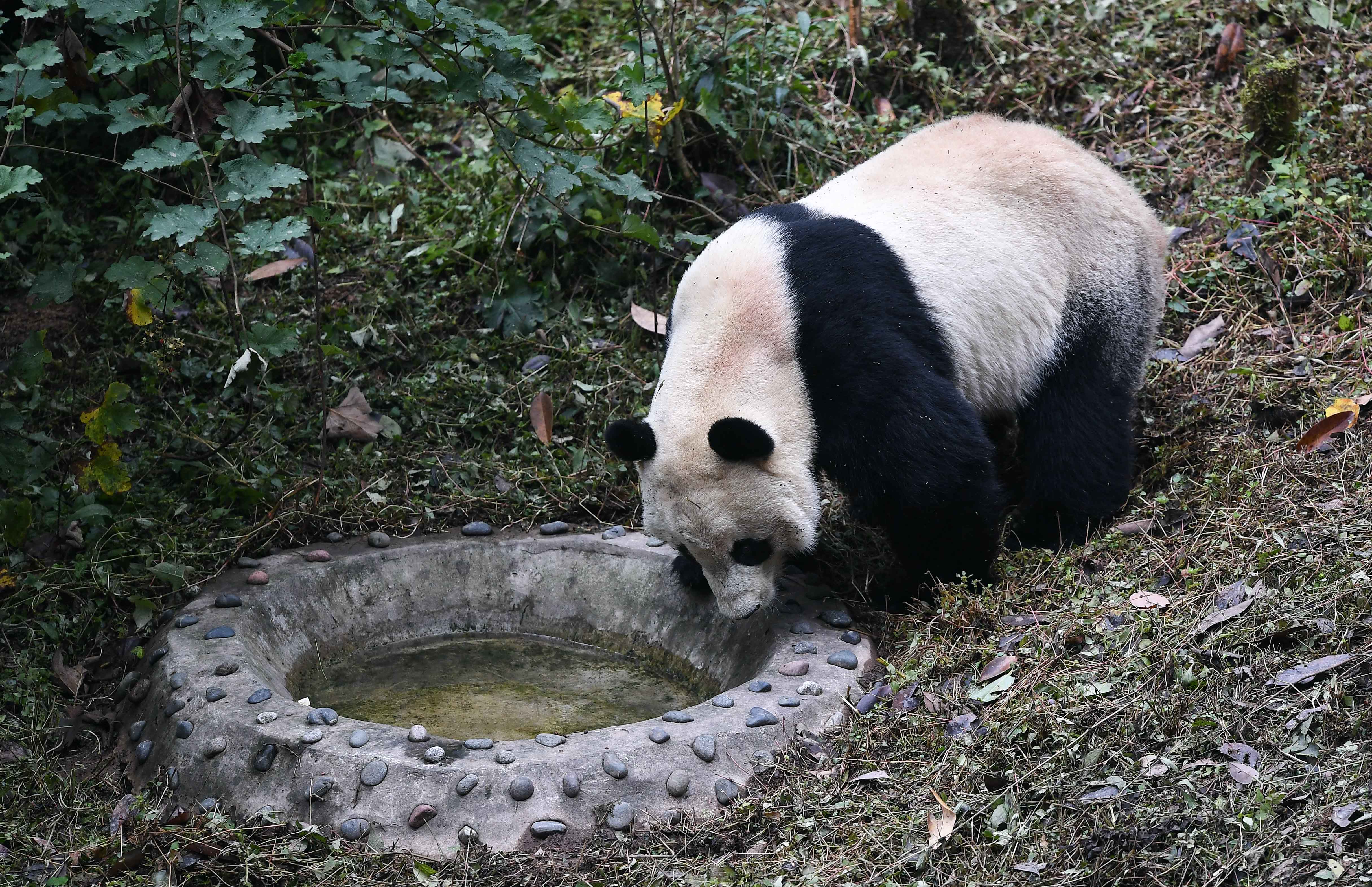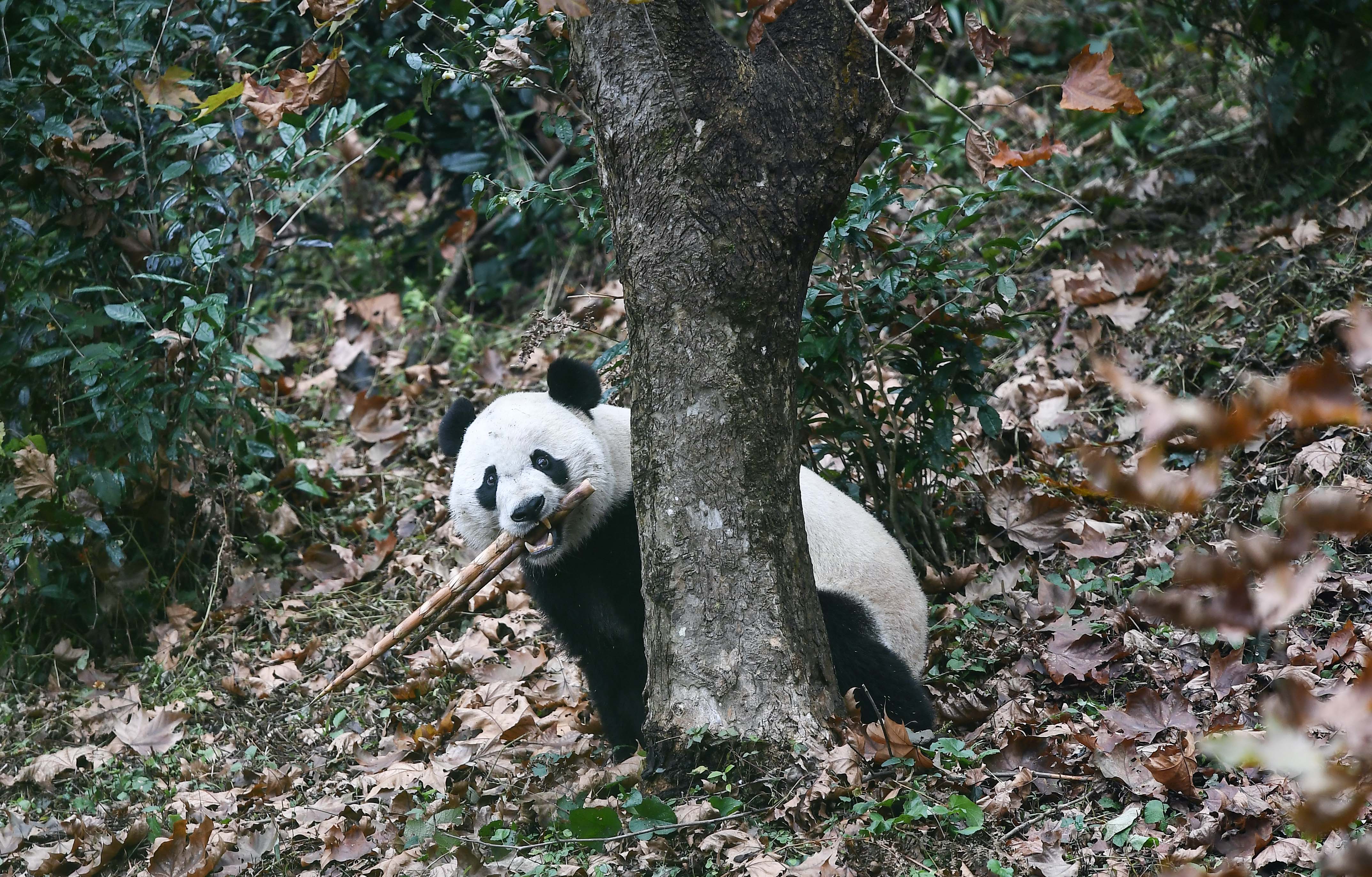 U.S.-born male giant panda Bei Bei is seen after his return from the United States at the Bifengxia Panda Base of the China Conservation and Research Center for the Giant Panda in Ya'an, southwest China's Sichuan Province, Nov. 21, 2019.(Xinhua/Xue Yubin)