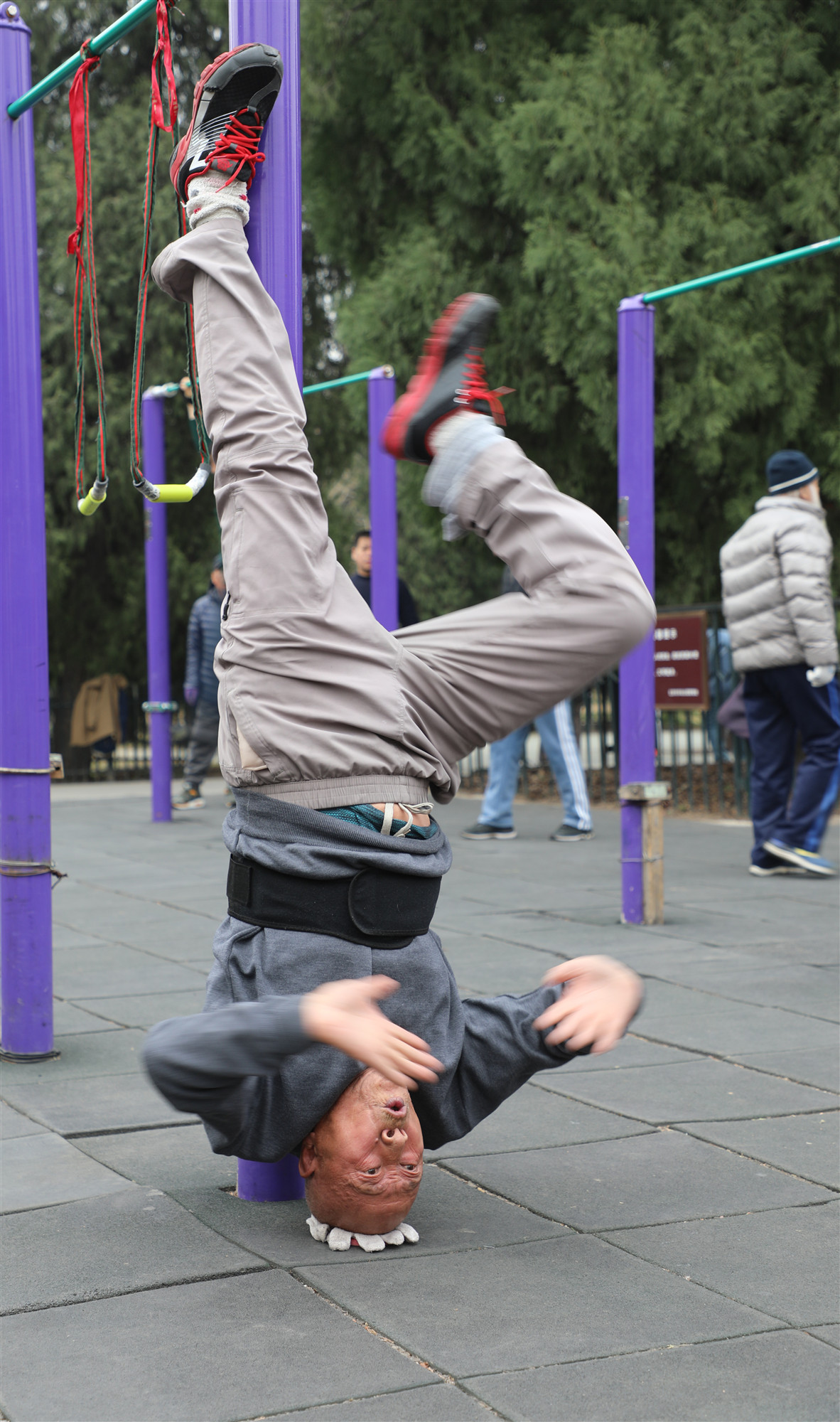 Gao Hong stands on head at the Temple of Heaven, Nov. 21, 2019.