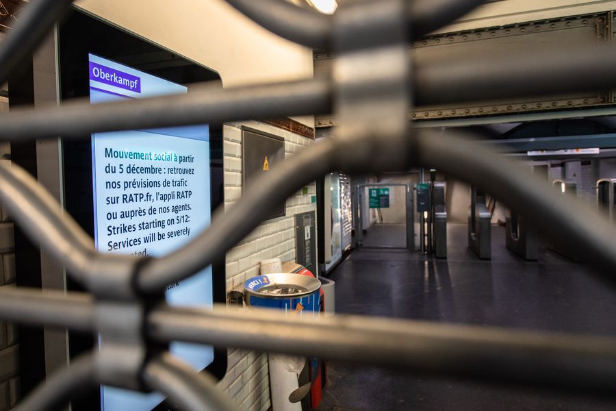 A closed metro station due to the strike in Paris, France. (Photo by Aurelien Morissard/Xinhua)