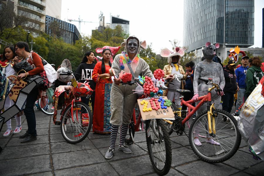 People participate in a bicycle zodiac decoration competition in Mexico City, Mexico, Jan. 19, 2020. (Photo provided by China Cultural Center in Mexico)
