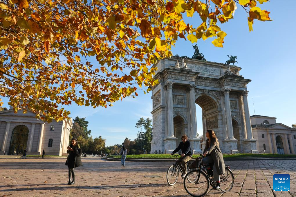 This photo taken on Nov. 4, 2025 shows the autumn scenery in Milan, Italy. (Xinhua/Li Jing)