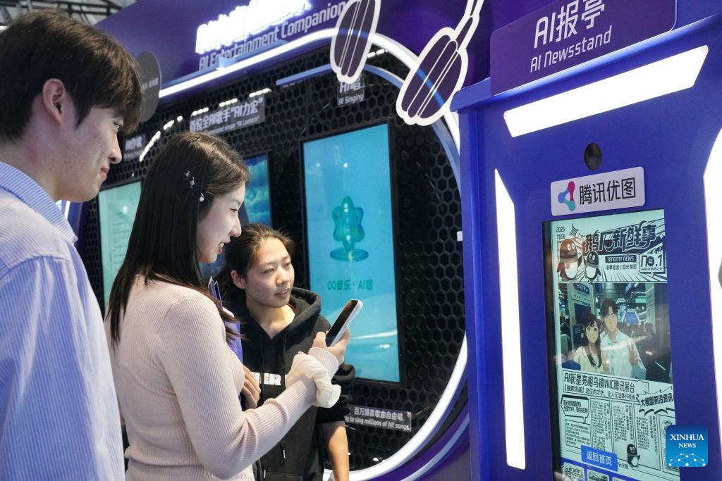 People visit the 2025 World Internet Conference (2025 WIC) Light of Internet Expo in Wuzhen, east China's Zhejiang Province, Nov. 6, 2025. The expo kicked off here on Thursday, showcasing more than 1,000 cutting-edge AI technology products from over 600 domestic and overseas enterprises. (Xinhua/Liu Qiong)
