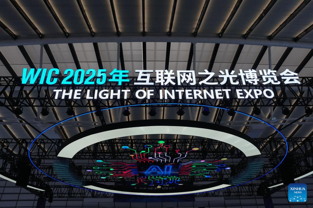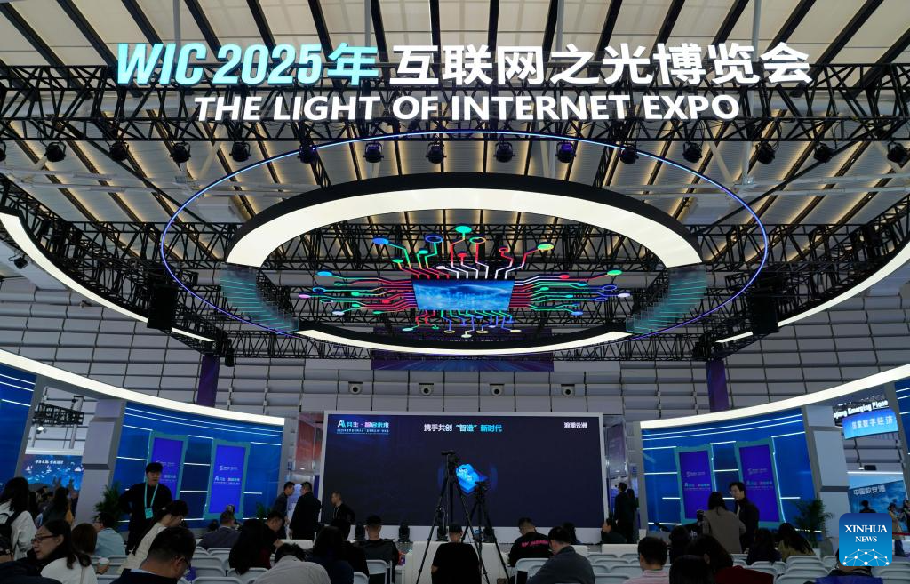 This photo taken on Nov. 6, 2025 shows a scene at the 2025 World Internet Conference (2025 WIC) Light of Internet Expo in Wuzhen, east China's Zhejiang Province. The expo kicked off here on Thursday, showcasing more than 1,000 cutting-edge AI technology products from over 600 domestic and overseas enterprises. (Xinhua/Zhao Yusi)
