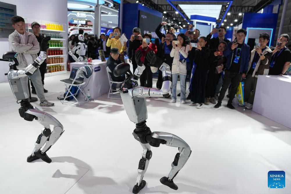 Humanoid robots dance at the 2025 World Internet Conference (2025 WIC) Light of Internet Expo in Wuzhen, east China's Zhejiang Province, Nov. 6, 2025. The expo kicked off here on Thursday, showcasing more than 1,000 cutting-edge AI technology products from over 600 domestic and overseas enterprises. (Xinhua/Huang Zongzhi)