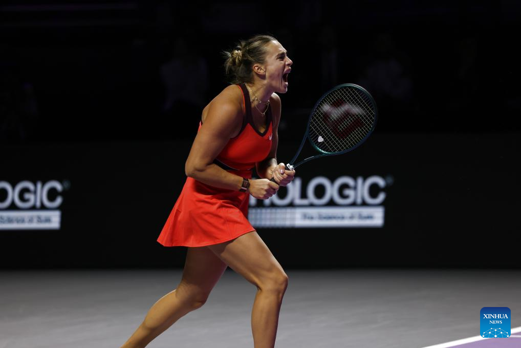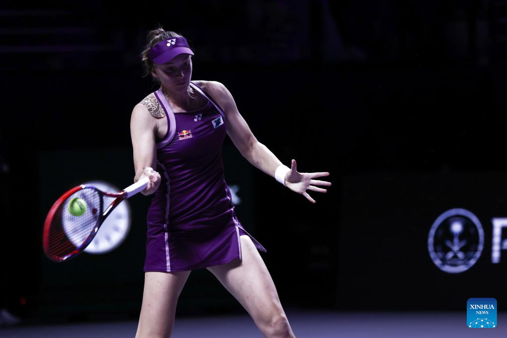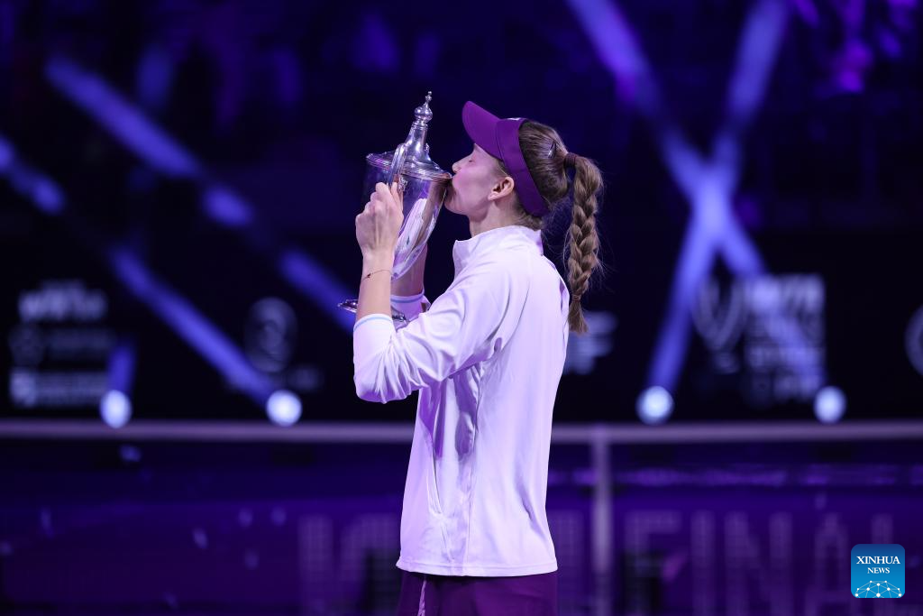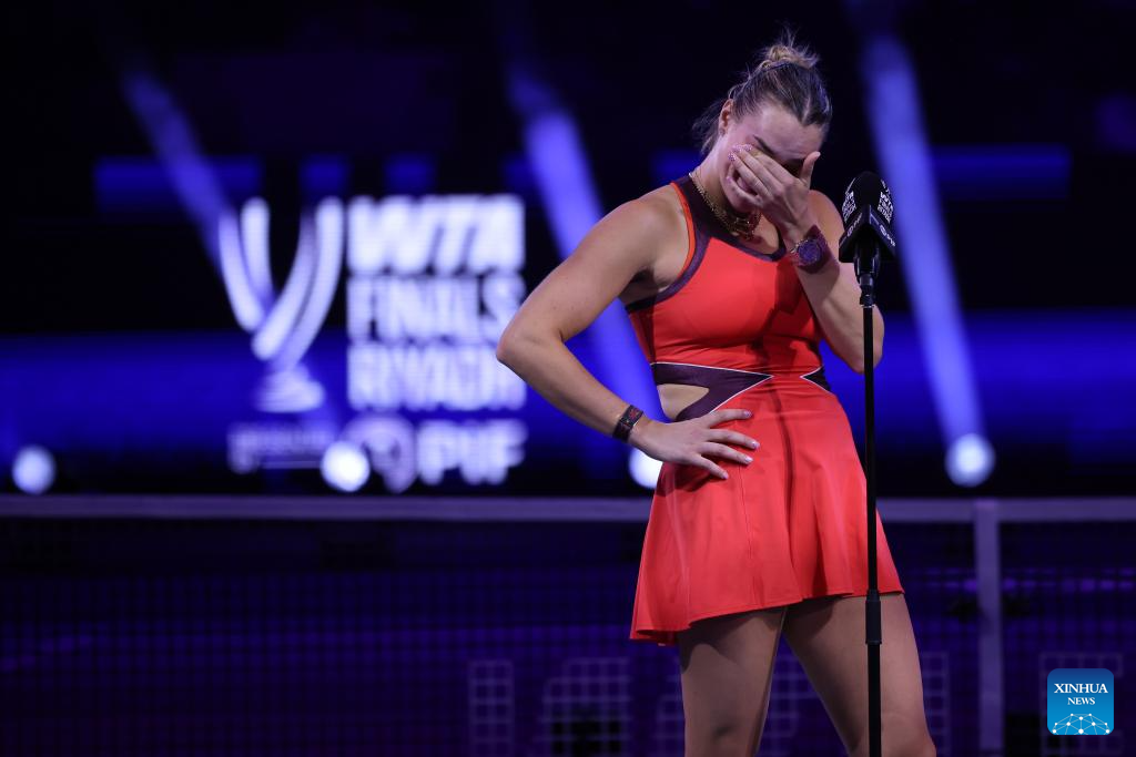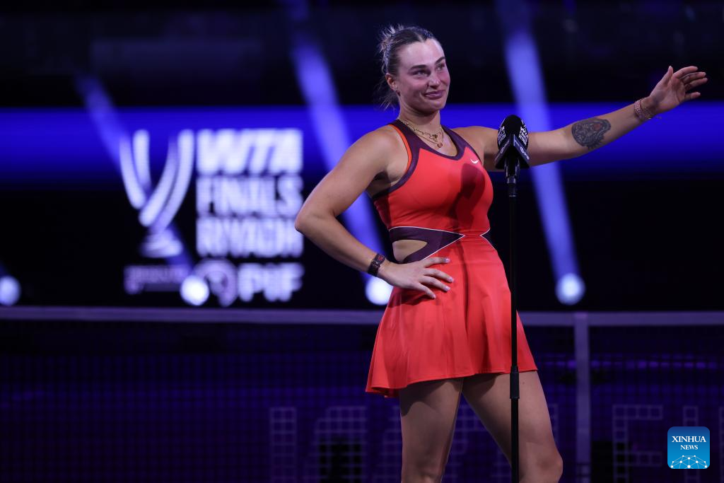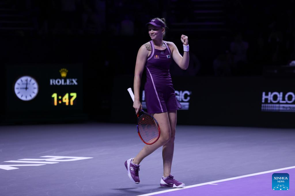 RIYADH, Nov. 9 (Xinhua) -- Former Wimbledon champion Elena Rybakina of Kazakhstan defeated world No. 1 Aryna Sabalenka of Belarus 6-3, 7-6 (0) to become the first Asian player ever to win the WTA Finals singles title on Saturday night.