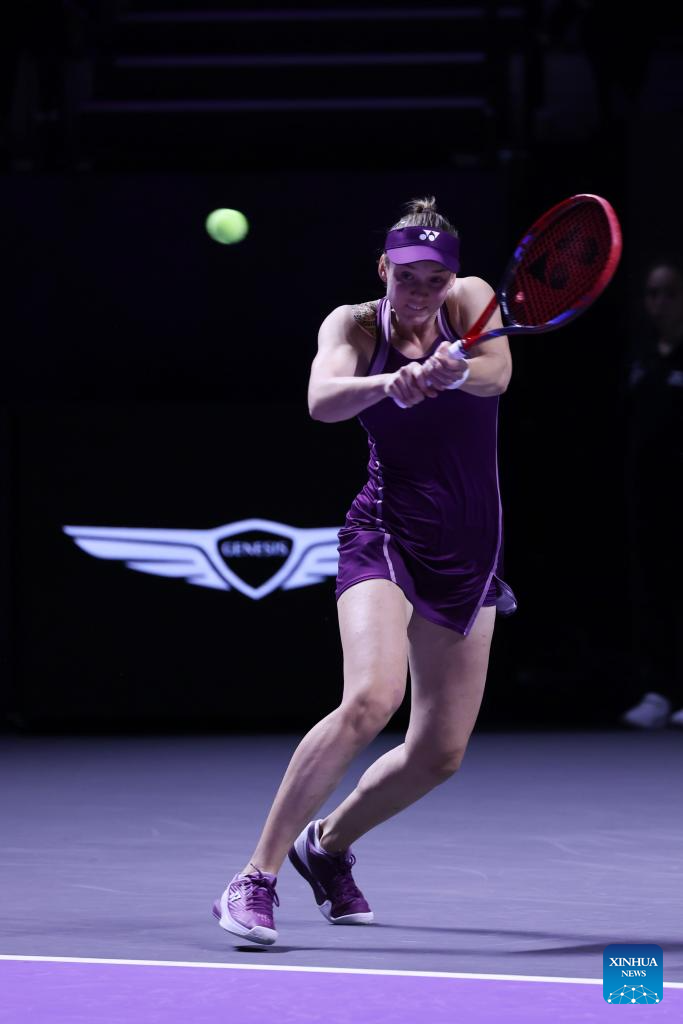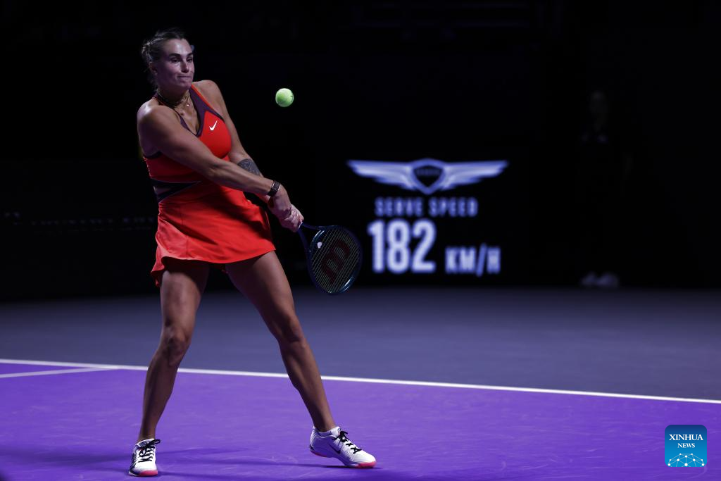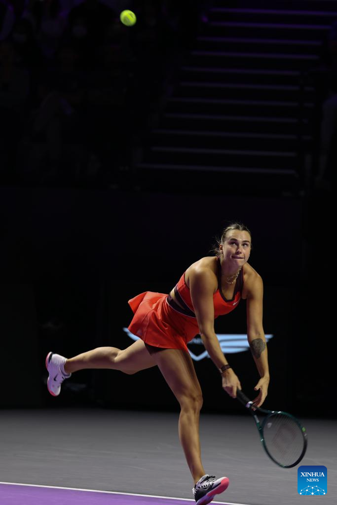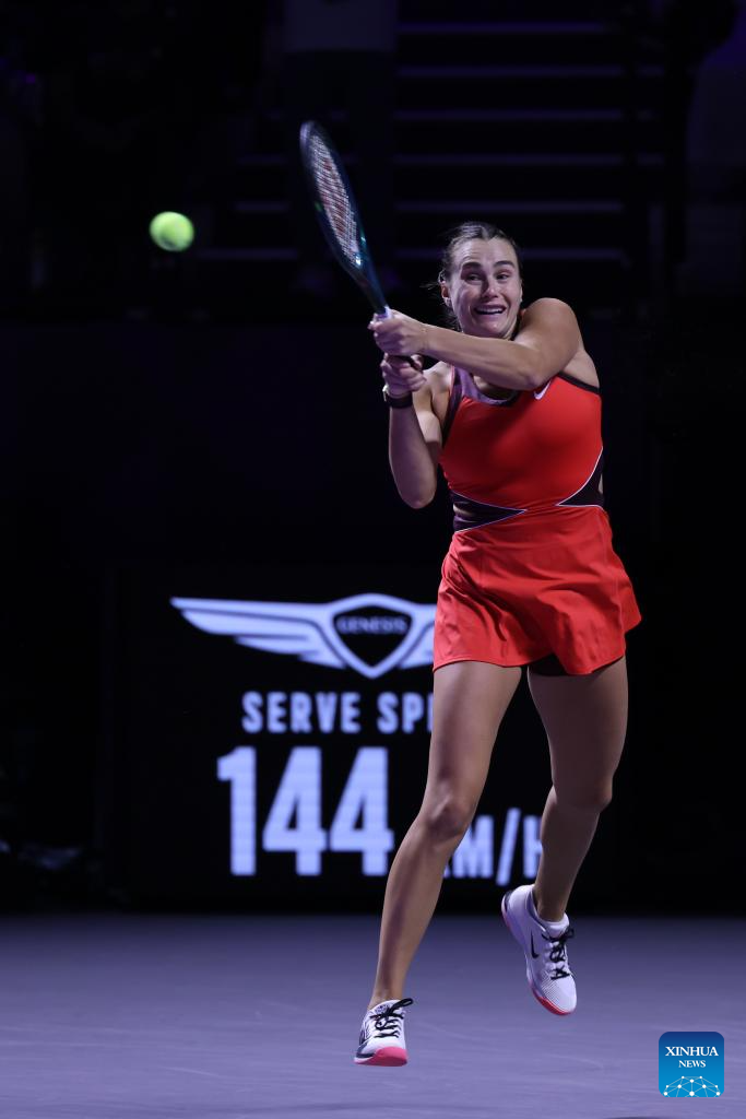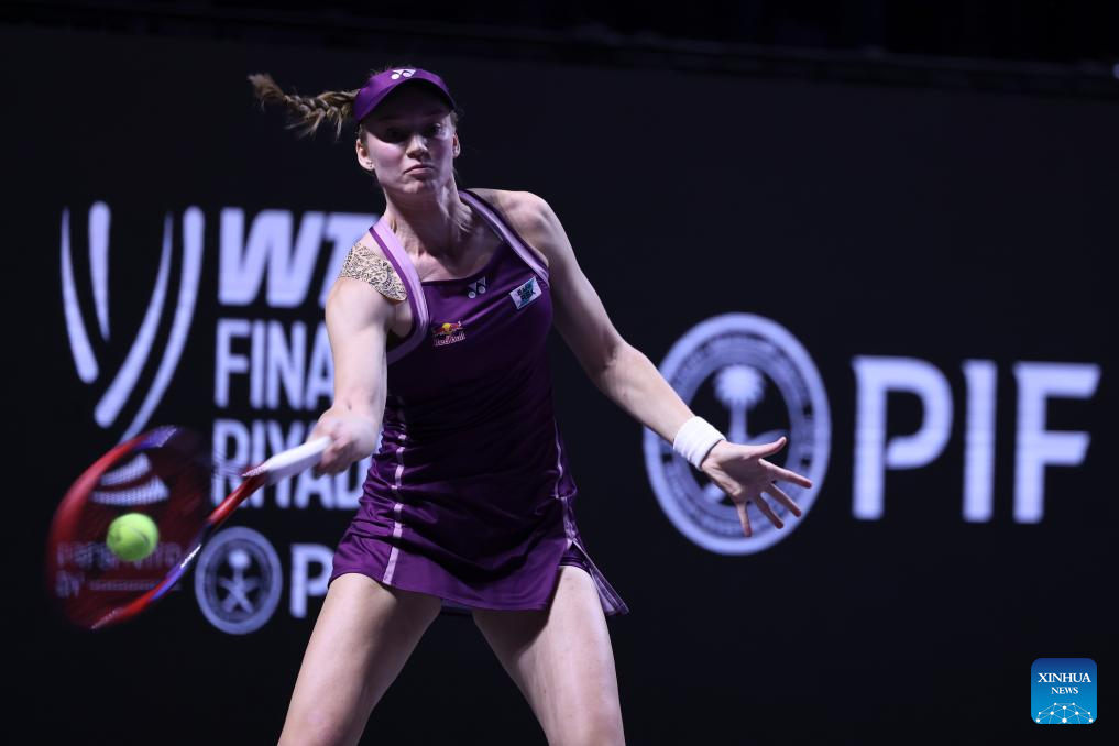 RIYADH, Nov. 9 (Xinhua) -- Former Wimbledon champion Elena Rybakina of Kazakhstan defeated world No. 1 Aryna Sabalenka of Belarus 6-3, 7-6 (0) to become the first Asian player ever to win the WTA Finals singles title on Saturday night.