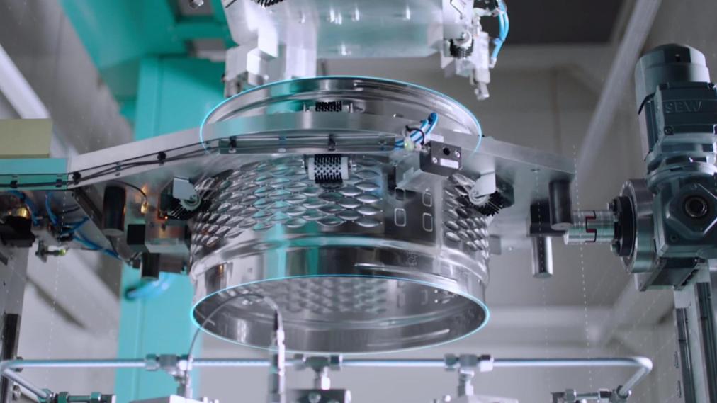 A researcher prepares to transfer a tray of self-glimmering plants into a dark room for observation at the laboratory of Magicpen Bio in Hefei, east China's Anhui Province, Dec. 3, 2025. (Xinhua/Zhang Duan)