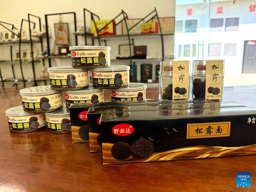 Truffle products developed by Yongren Yesenda Mushroom Co., Ltd. are pictured in Yongren County, southwest China's Yunnan Province, Dec. 9, 2025.(Xinhua/Xiong Xuanang)