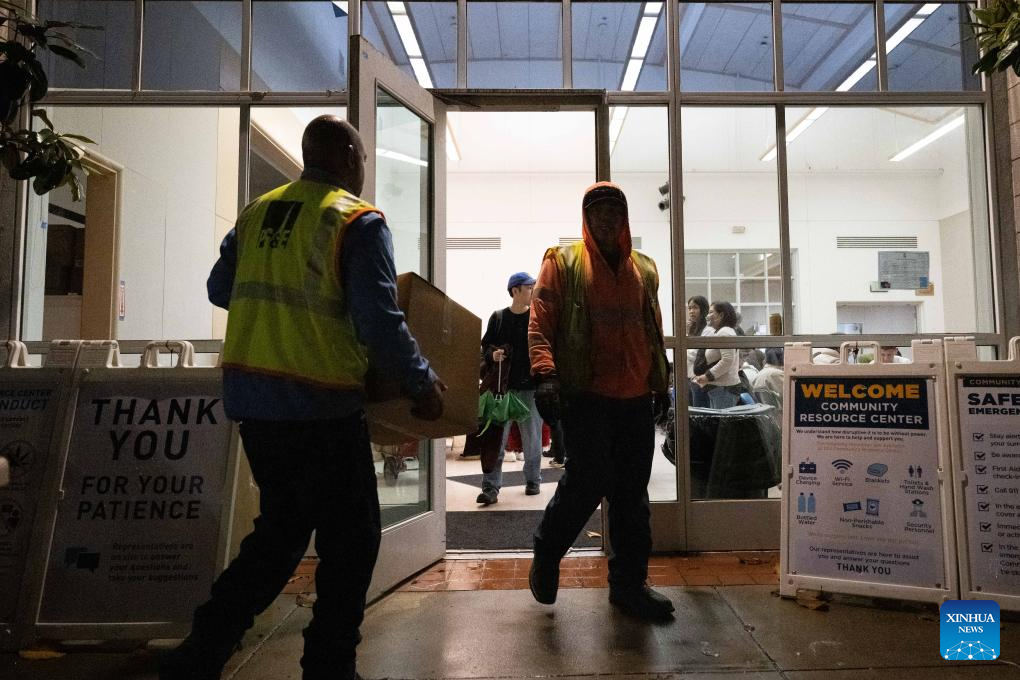 People get supplies from a community resource center for residents affected by the power outage in San Francisco, California, the United States on Dec 21, 2025. A large-scale power outage struck San Francisco on Saturday, affecting about 130,000 households and businesses, or roughly one-third of all customers served by Pacific Gas and Electric Company (PG&E) in the city. (Photo by Ziyu Julian Zhu/Xinhua)