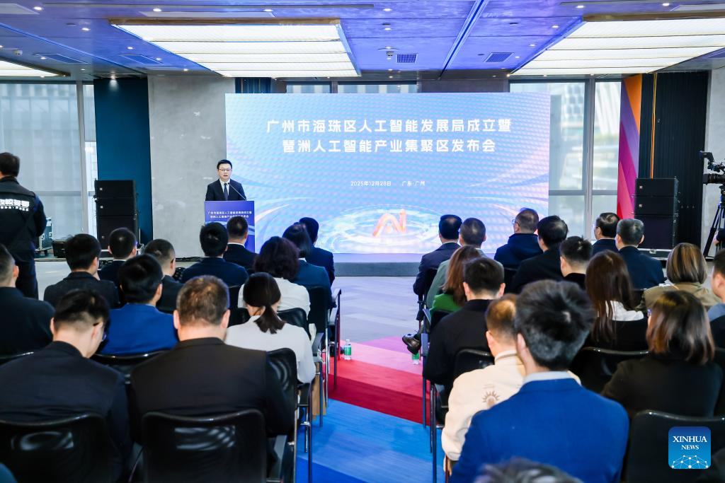 The AI development bureau is inaugurated in Haizhu District of Guangzhou, south China's Guangdong Province, Dec. 28, 2025.(Xinhua)