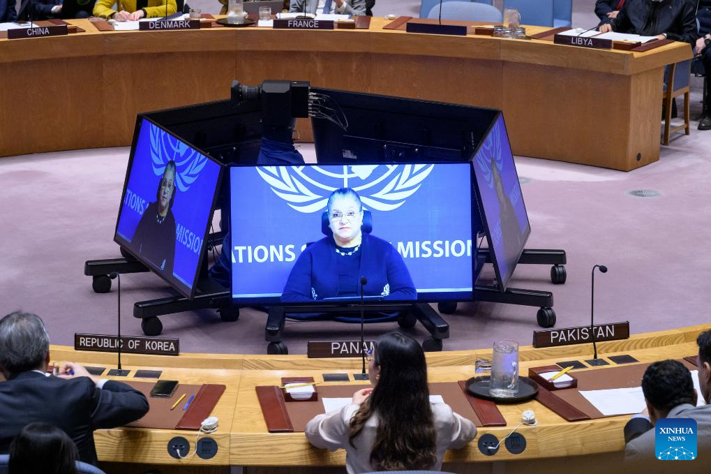 The Security Council holds a meeting on the situation in Libya at the UN headquarters in New York, Dec. 19, 2025. The top UN envoy for Libya said Friday that she intends to present an alternative mechanism as a political roadmap for Libya toward elections, which have been stalled. (Evan Schneider/UN Photo/Handout via Xinhua)