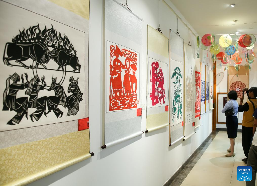 Photo taken on Nov. 5, 2025 shows traditional Chinese paper-cutting artworks at the China Cultural Center in Yangon, Myanmar. A traditional Chinese paper-cutting exhibition was held at the China Cultural Center in Yangon on Wednesday. (Xinhua/Myo Kyaw Soe)
