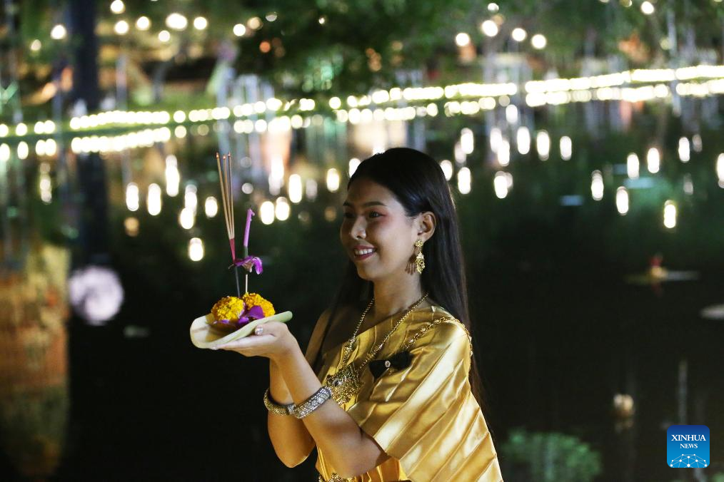 People attend the Loy Krathong Festival in Ayutthaya, Thailand, Nov. 5, 2025. Thailand celebrated the traditional Loy Krathong Festival on Wednesday. (Xinhua/Rachen Sageamsak)