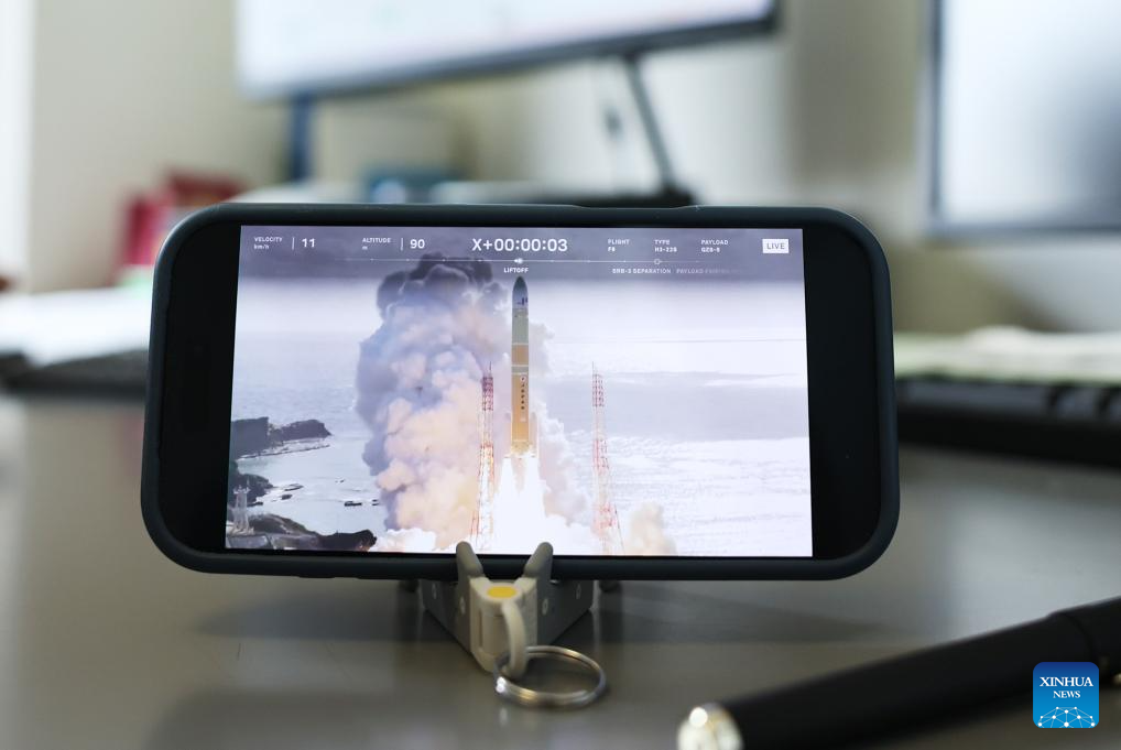 A cellphone screen showing the live broadcast of the launch of Japan's H3 rocket is pictured in Tokyo, Japan, Dec. 22, 2025. Japan Aerospace Exploration Agency launched an H3 rocket on Monday morning, but the second-stage engine ceased combustion prematurely. (Xinhua/Jia Haocheng)