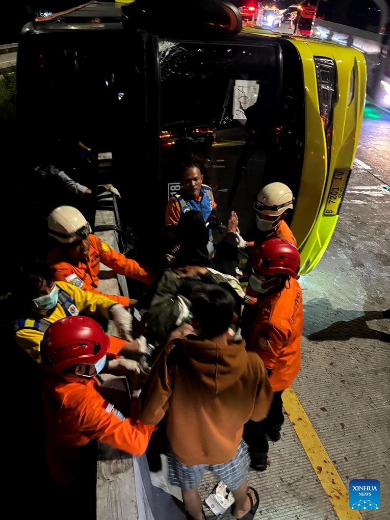 JAKARTA, Dec. 22 (Xinhua) -- Fifteen people were killed and 19 others injured early Monday in a bus accident at the intersection of the Krapyak toll exit in Semarang city, Indonesia's Central Java province, local authorities reported.