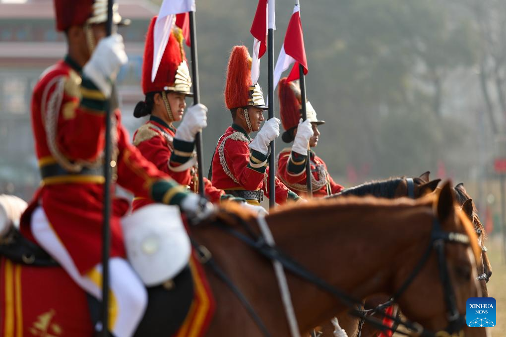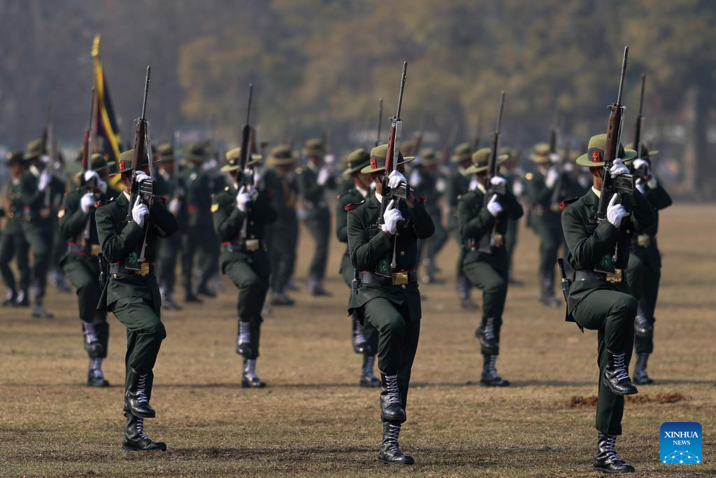 The Nepalese Army performs in a celebratory parade marking the 263rd Army Day in Kathmandu, Nepal, Feb. 15, 2026. (Photo by Sulav Shrestha/Xinhua)