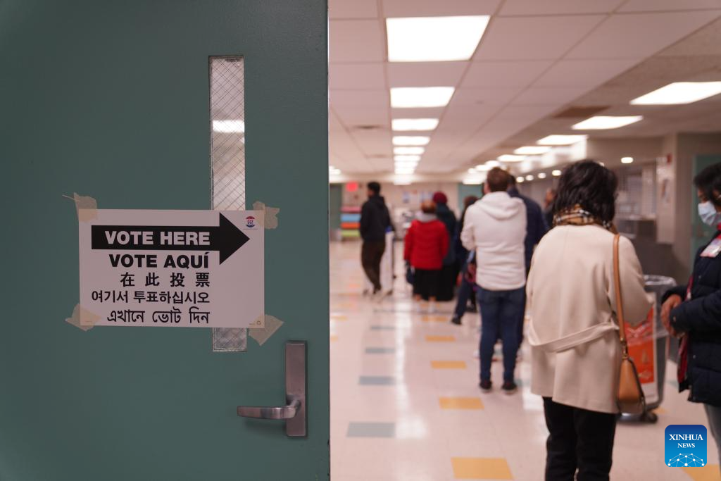 People wait to vote inside a polling station in Queens, New York City, the United States, on Nov. 4, 2025. The New York City mayoral election took place on Tuesday. (Xinhua/Zhang Fengguo)