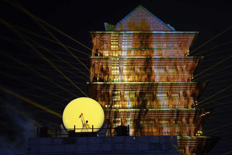 元旦期間,位于甘肅省蘭州市七里河區的蘭州黃河樓景區上演《大有蘭州》光影秀,表演分為“源之大河”“金之大城”“民之大韻”“蘭之大州”四個主題篇章,讓游客在黃河之濱感悟黃河文化。